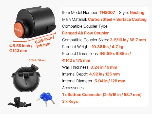 VEVOR Anhängerschloss, Φ142 x 175 mm, kompatibel mit 58,7-mm-Kupplungen, Diebstahlsicherung mit 3 Schlüsseln, korrosionsbeständig, Hochsicherheitsschloss für Wohnmobile, Anhänger, Boote