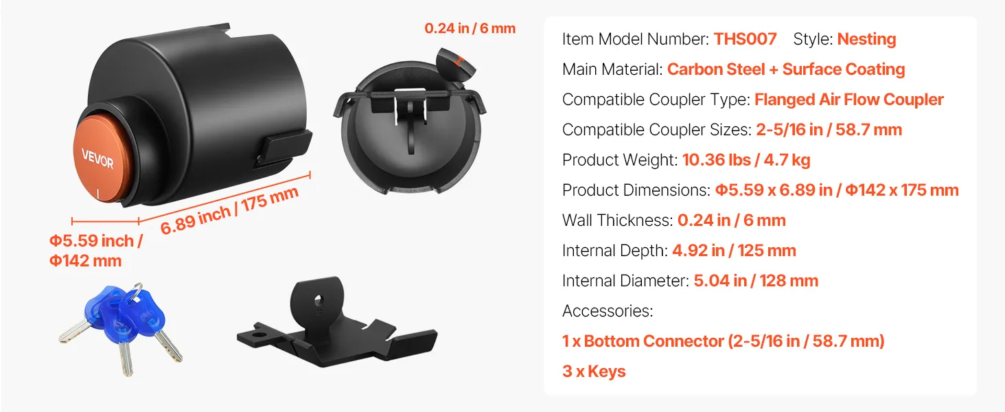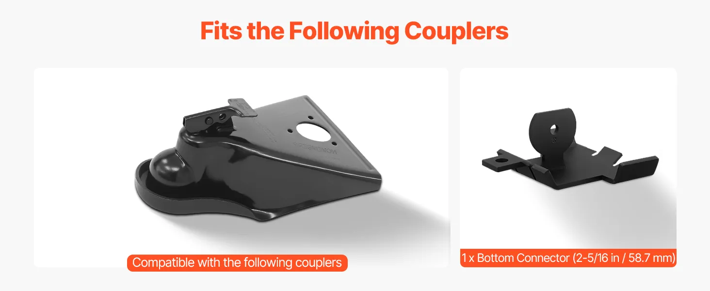 Dieses Anhängerschloss ist mit 58,6-mm-Flanschluftkupplungen kompatibel. Hinweis: Bitte überprüfen Sie vor dem Kauf die Bilder, um sicherzustellen, dass es zu Ihrer Kupplung passt und perfekt sitzt.