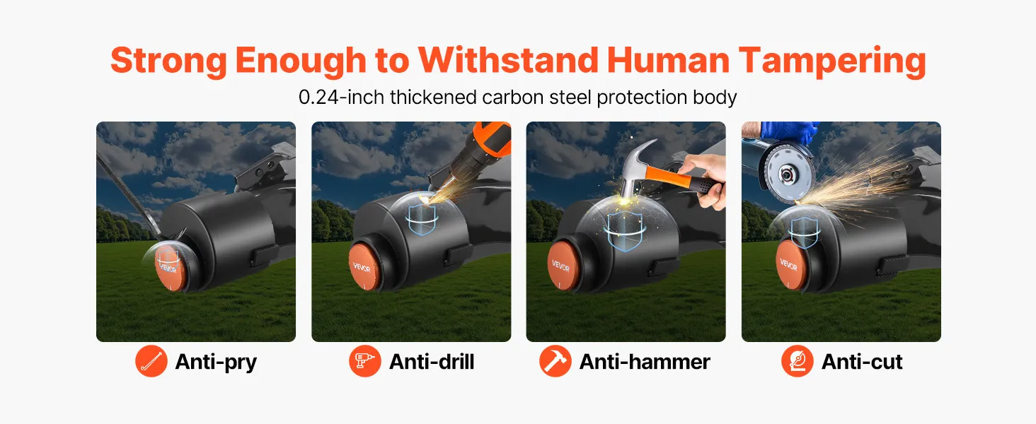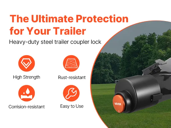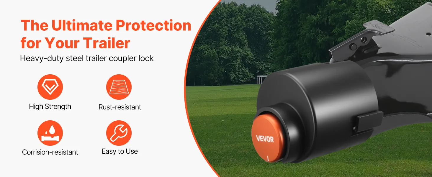 Unser robustes 4,7 kg schweres Anhängerkupplungsschloss aus hochfestem Kohlenstoffstahl ist robust und sicher für Ihren Anhänger oder Ihr Wohnmobil. Schützen Sie Ihr Fahrzeug vor Diebstahl, während es im Freien geparkt ist!