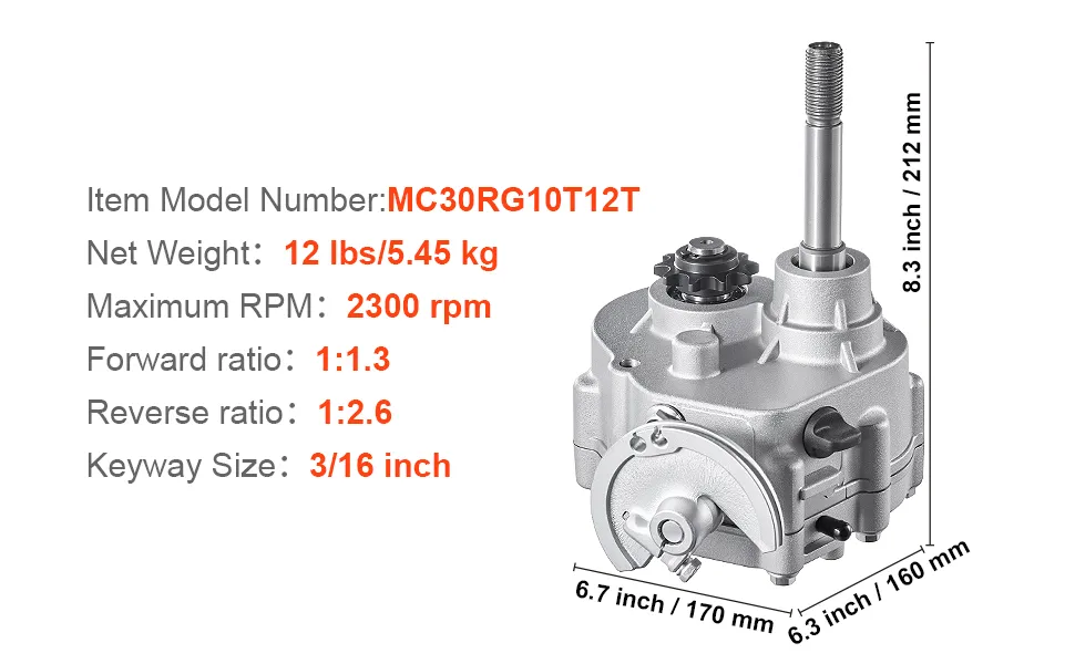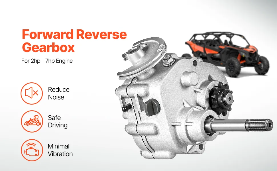 Passend für Motoren von 2 bis 7 PS: Dieses Vorwärts-/Rückwärtsgetriebe-Kit der Serie 30 ist für Go-Karts, Dünenbuggys, UTVs und andere Geländefahrzeuge mit Kette Nr. 35 12T oder Kette Nr. 40/41/420 10T konzipiert.