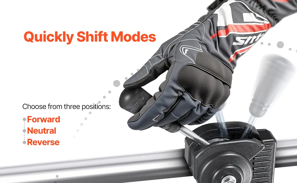 Drei Schaltmodi: Dieses mit einem Griff ausgestattete Getriebe bietet drei einfach zu bedienende Schaltmodi: Vorwärts, Rückwärts und Neutral, was eine bequeme und unkomplizierte Bedienung ermöglicht.