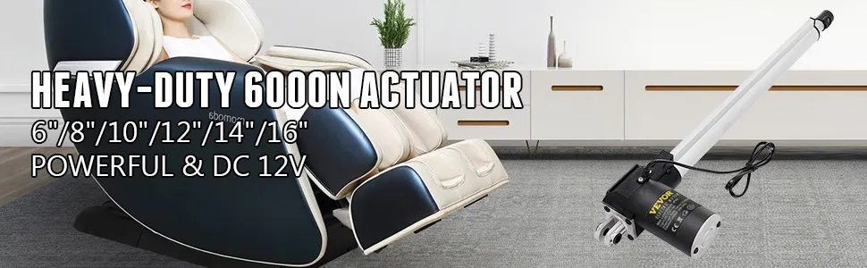 DC 12 V Linearantrieb wird verwendet, um den Zweck der Bewegung von Dingen in einer geraden Linie (nach oben und unten, oder Seite zu Seite) zu erhalten. Unser 14 Zoll (ca. 36 cm) Produkt ist ein robuster und zuverlässiger Aktuator mit 6000 N Leistung. Er hat eingebaute Endschalter und ist mit der Schutzklasse IP44 ausgestattet. Es eignet sich für ein Massagesofa, einen Liegestuhl, einen TV-Lifter, einen Hubtisch, einen elektrischen Fensteröffner usw. Ein recht praktisches Gerät für schwere Arbeiten.
