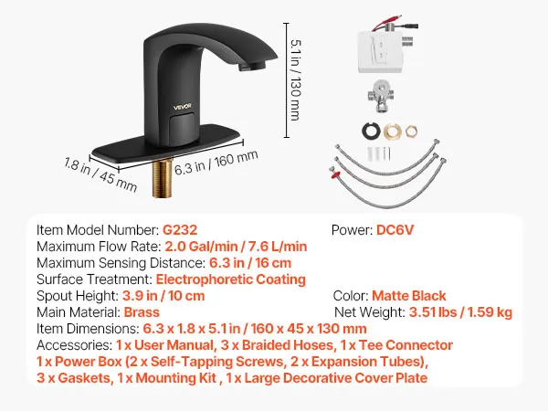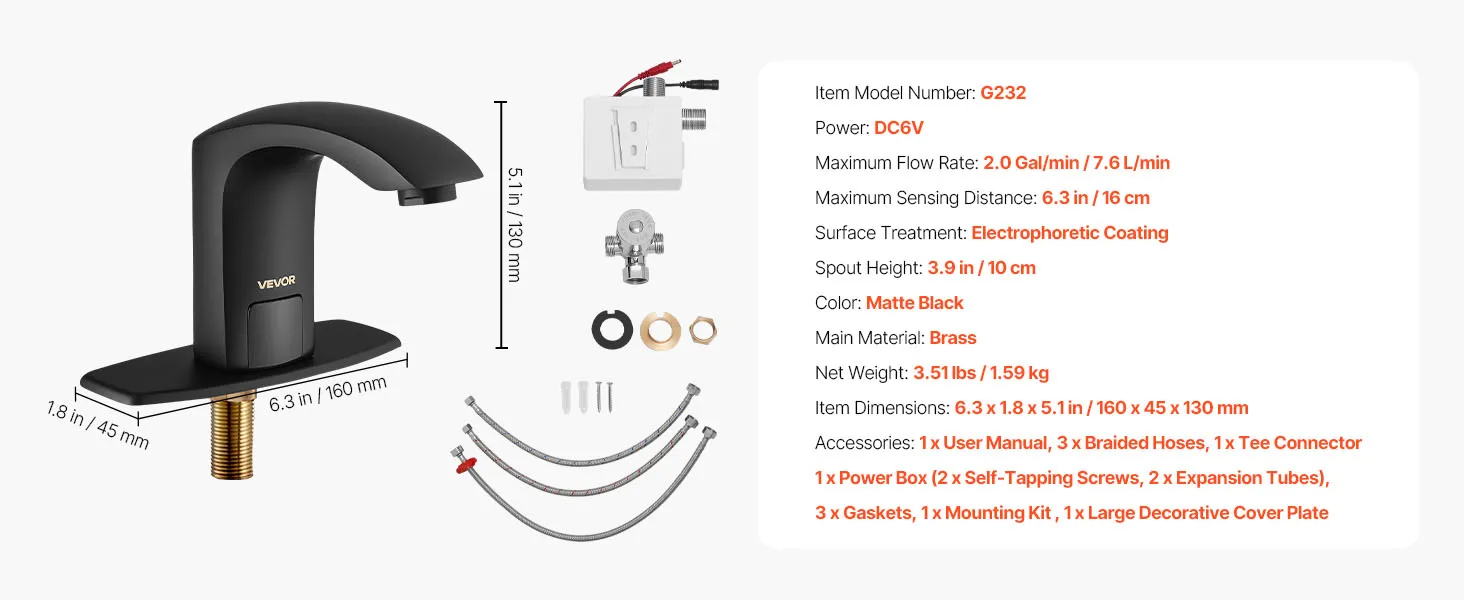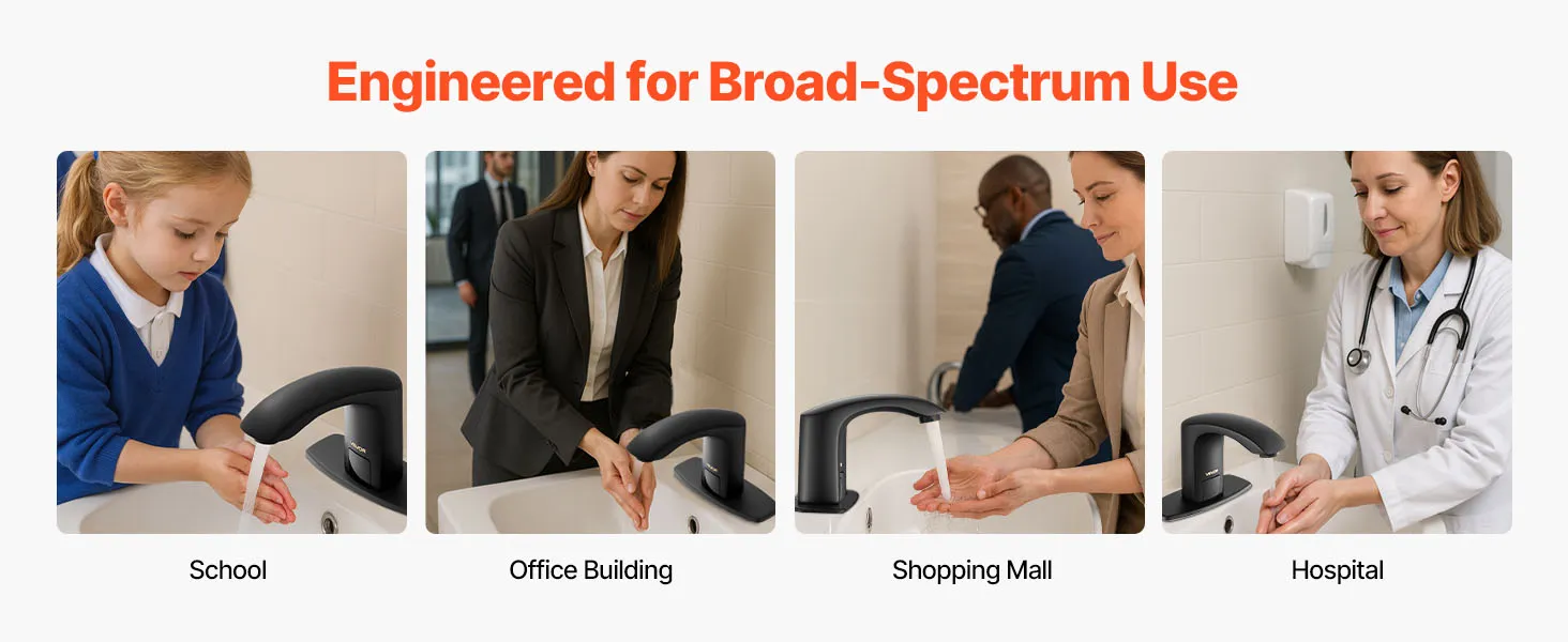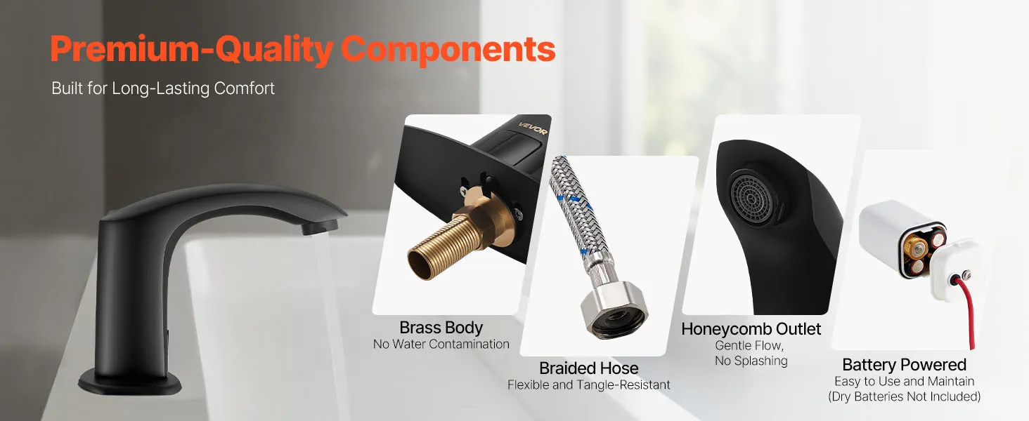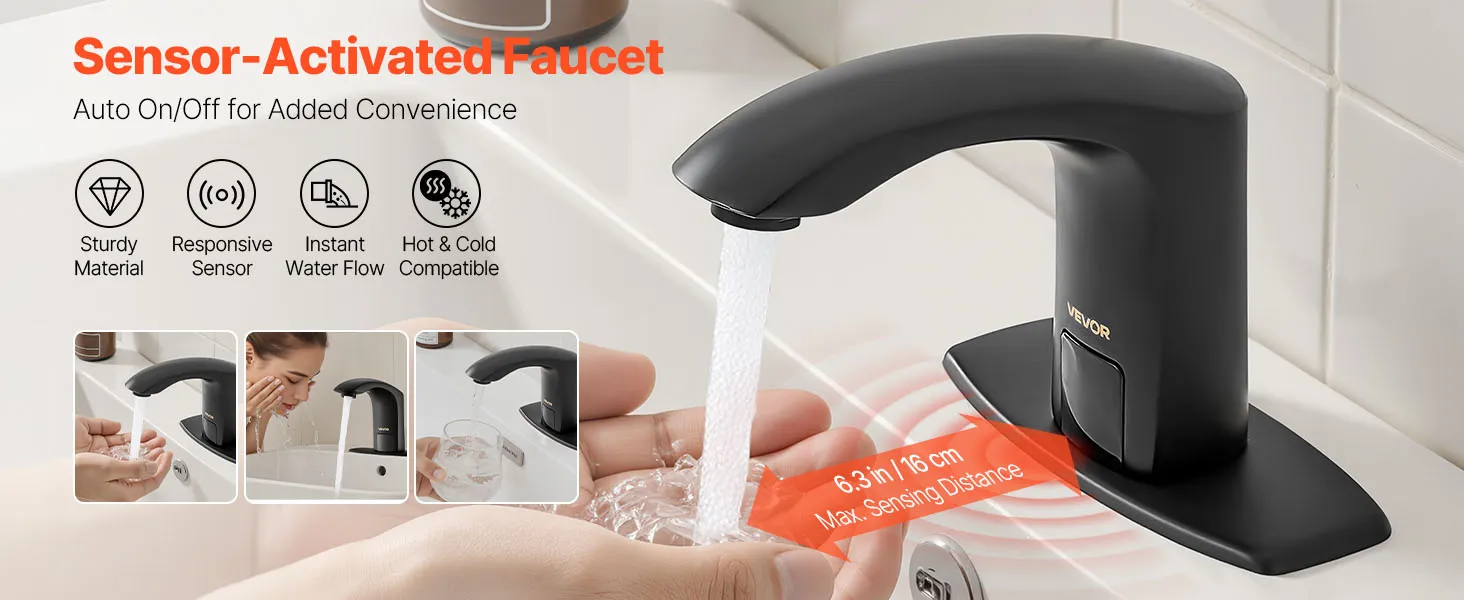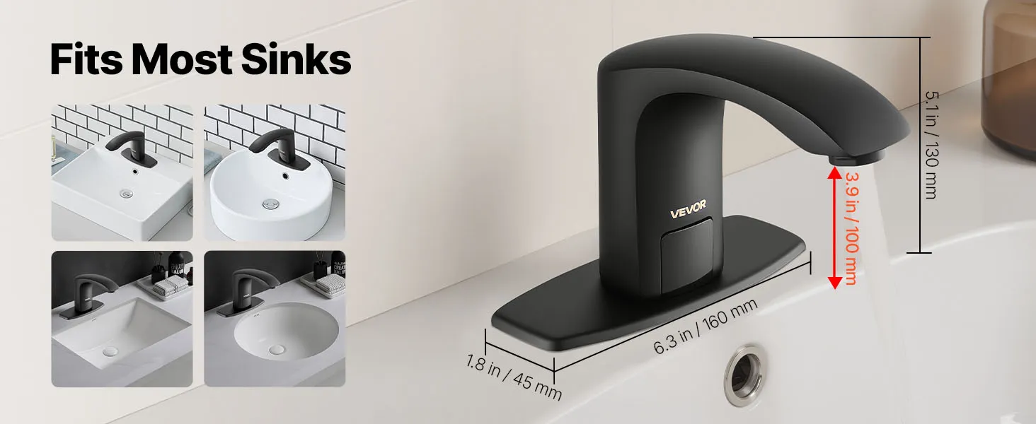 Hohe Kompatibilität: Dieser berührungslose Waschbeckenhahn verfügt über eine Standard-Installationsgröße und ist daher mit den meisten gängigen Spülbeckenmarken kompatibel. Ob Sie nun ein Upgrade durchführen oder Ihre Geräte austauschen möchten, es lässt sich problemlos in Ihr System integrieren und sorgt für eine reibungslose Installation