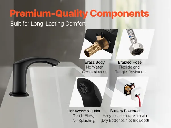 Einfache Wartung: Dieser berührungslose Badezimmerhahn wird mit 4 AA-Alkalibatterien (nicht im Lieferumfang enthalten) betrieben und ist sicher und wartungsfreundlich. Schrauben Sie einfach die obere Kappe ab – kein Werkzeug erforderlich – für einen schnellen Batteriewechsel