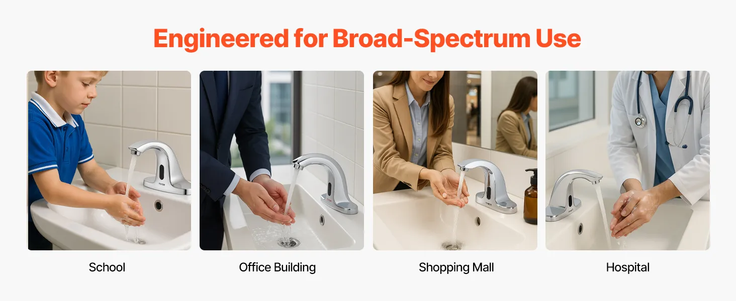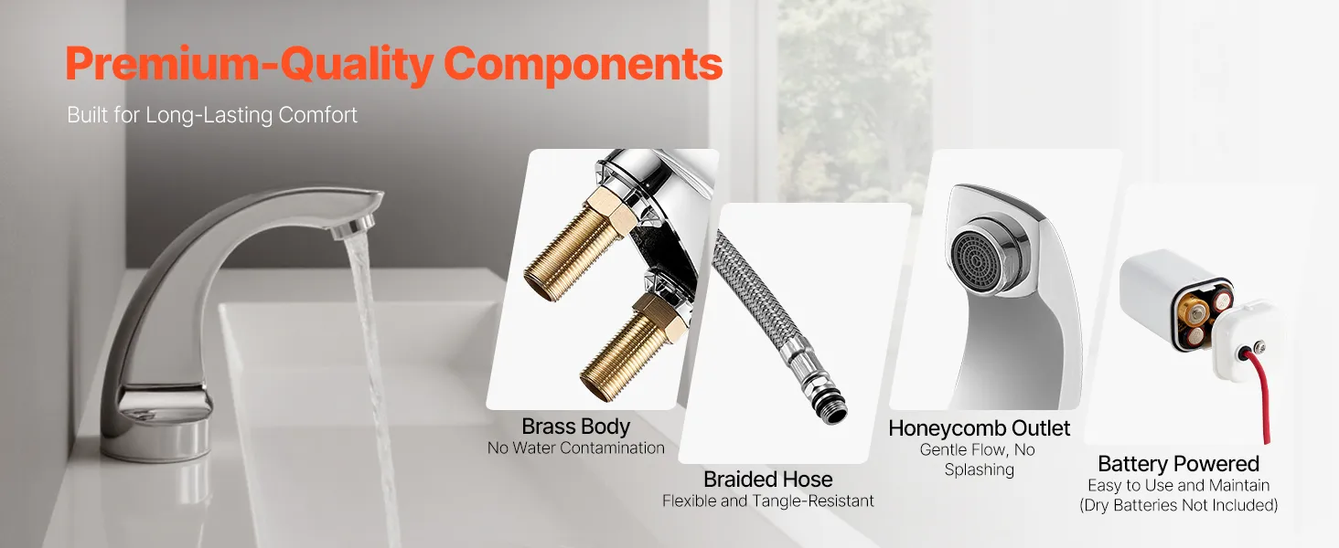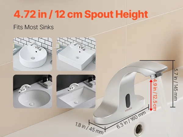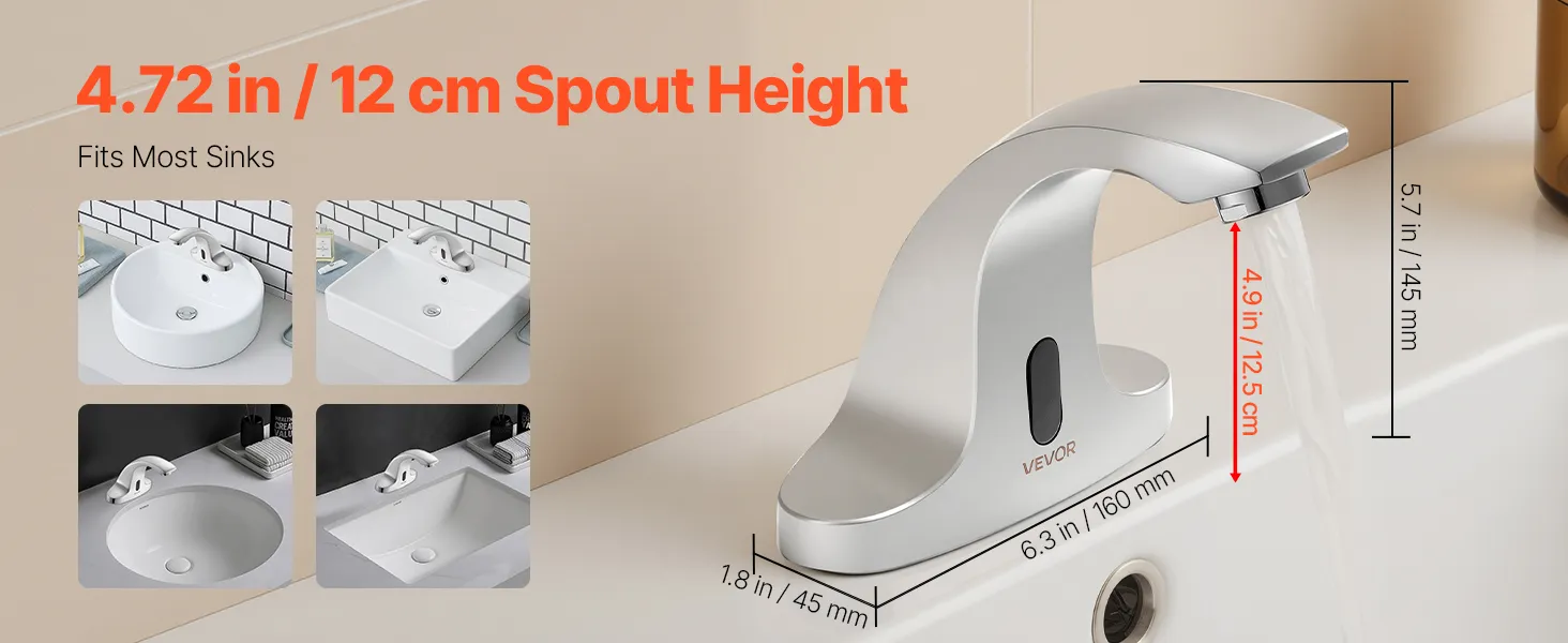 Hohe Kompatibilität: Dieser berührungslose Waschbeckenhahn verfügt über eine Standard-Installationsgröße und ist daher mit den meisten gängigen Spülbeckenmarken kompatibel. Ob Sie nun ein Upgrade durchführen oder Ihre Geräte austauschen möchten, es lässt sich problemlos in Ihr System integrieren und sorgt für eine reibungslose Installation