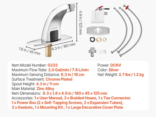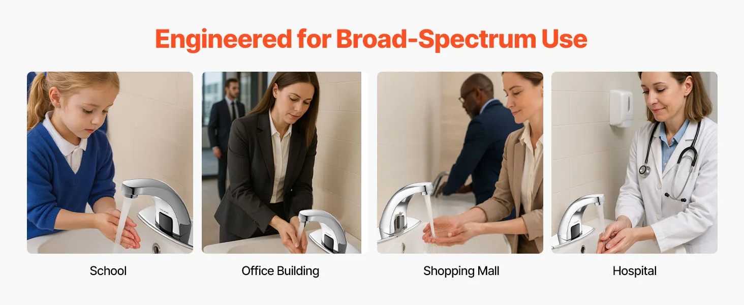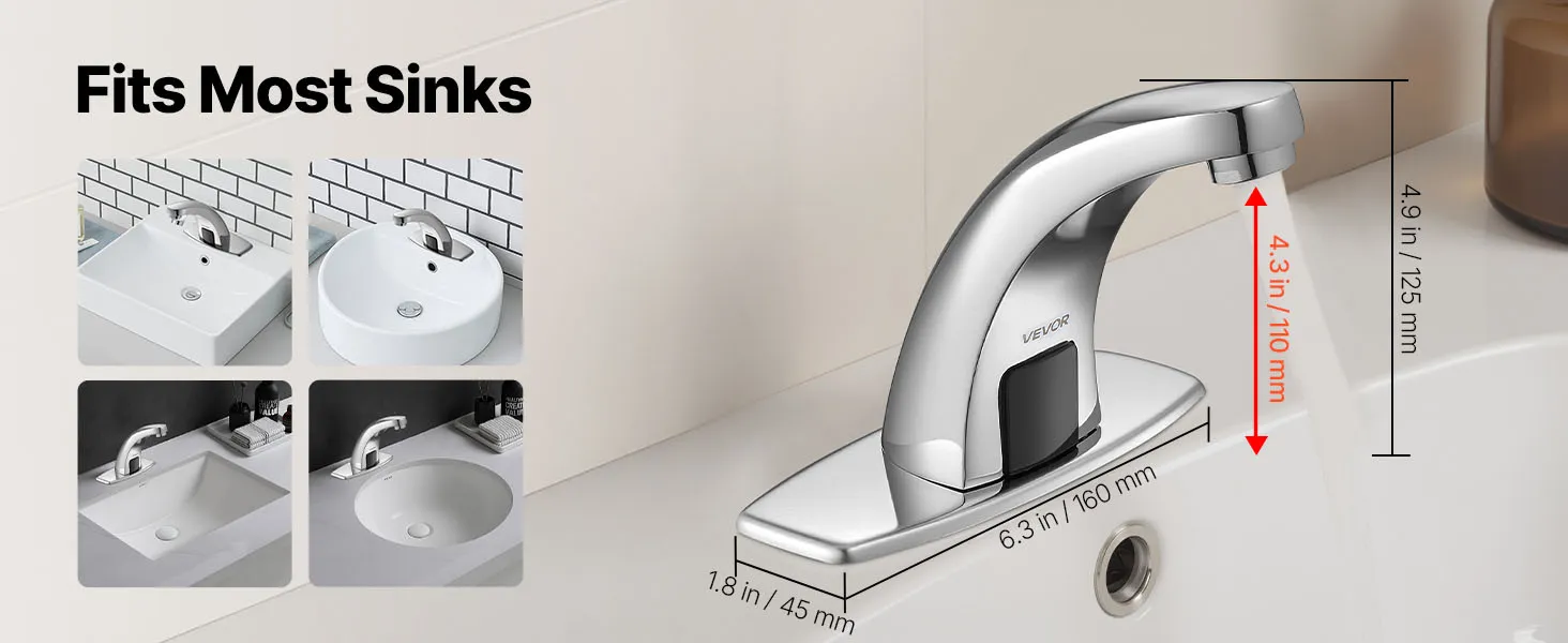 Hohe Kompatibilität: Dieser berührungslose Waschtischhahn verfügt über eine Standard-Installationsgröße und ist daher mit den meisten gängigen Spülbeckenmarken kompatibel. Ob Sie nun ein Upgrade durchführen oder Ihre Geräte austauschen möchten, es lässt sich problemlos in Ihr System integrieren und sorgt für eine reibungslose Installation