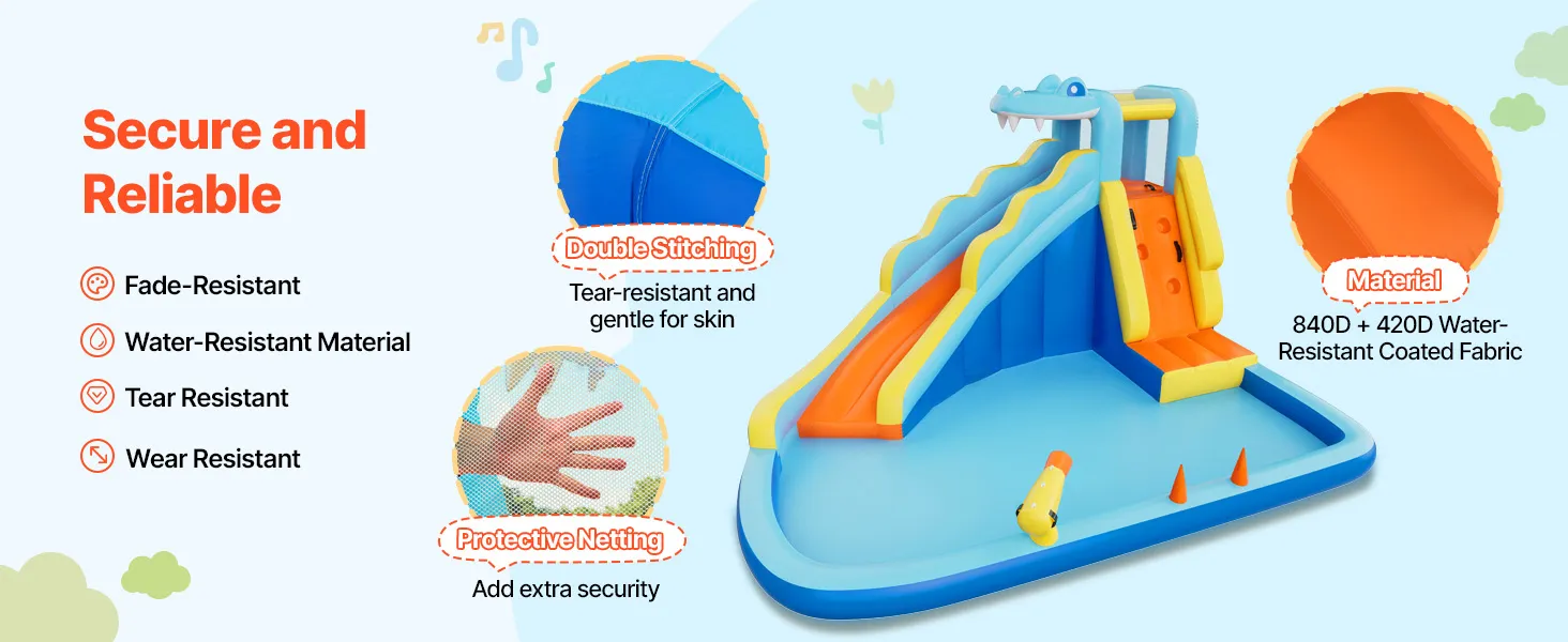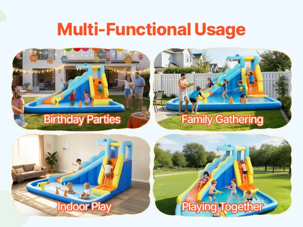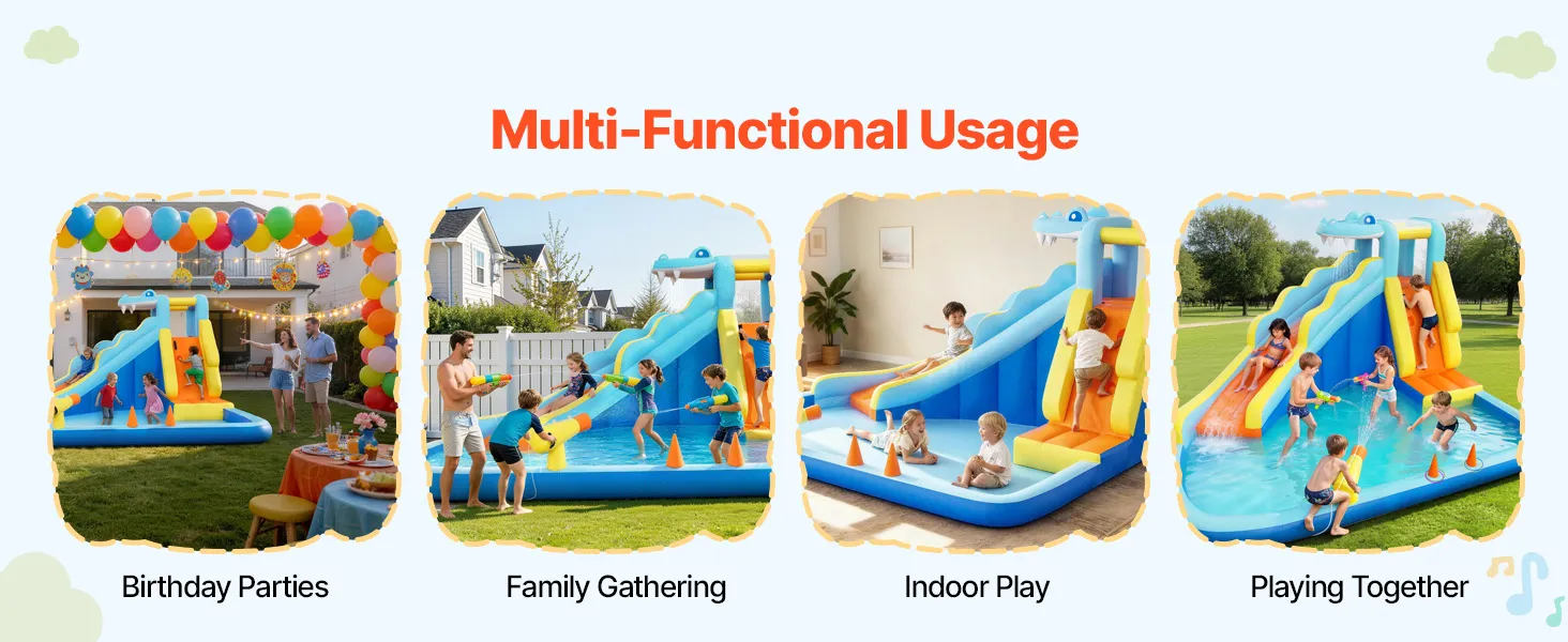 Mit ihrem einzigartigen Design eignet sich unsere aufblasbare Hüpfburg mit Wasserrutsche ideal für Geburtstagsfeiern, Familienfeste usw. Kinder können durch ununterbrochenes Hüpfen, Rutschen und fantasievolles Spielen aktiven Spaß haben und mit Freunden und Familie unvergessliche Momente erleben.