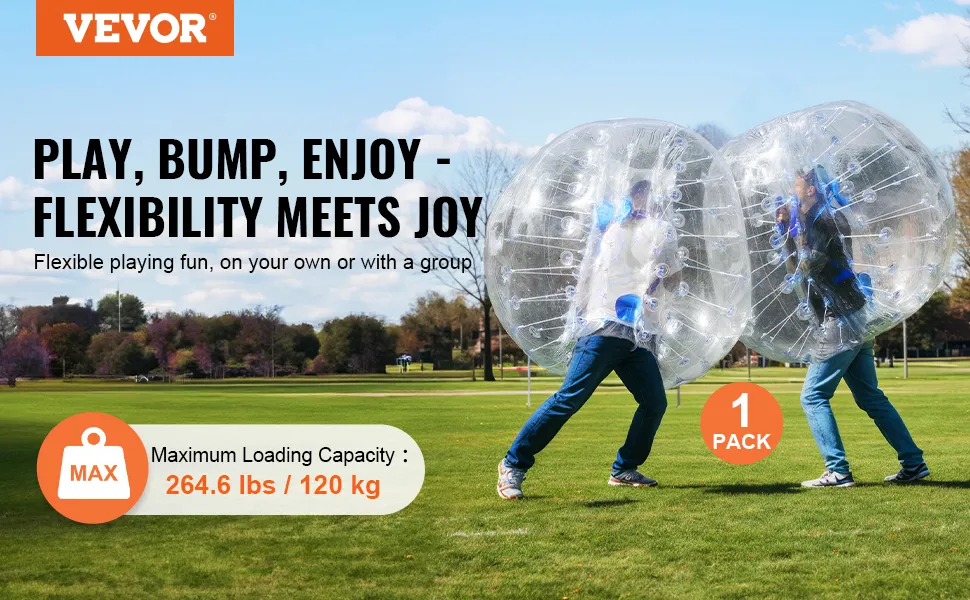 Der aufblasbare Bumper Ball von VEVOR ist perfekt für Familientreffen. Er bietet eine unterhaltsame Möglichkeit, Konflikte zu lösen. Genießen Sie sichere Treffen mit Familie und Freunden. Sie können sichere Geselligkeit mit Ihren Lieben genießen. Familie und Freunde sind immer glücklich! Dieser Ball ist sowohl für Einzel- als auch für Gruppenunterhaltung geeignet. Perfekt für Gärten, Hinterhöfe und Parks. Das ergonomische Design sorgt für Komfort und Sicherheit. Dieser Ball bringt alle für eine gute Zeit zusammen. Er ist eine hervorragende Ergänzung für jedes Familienereignis.