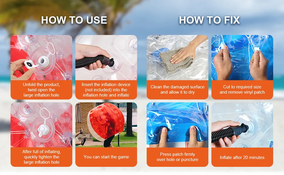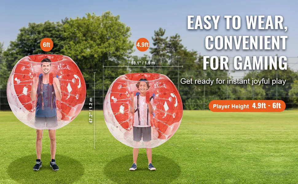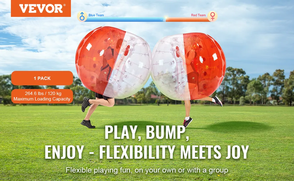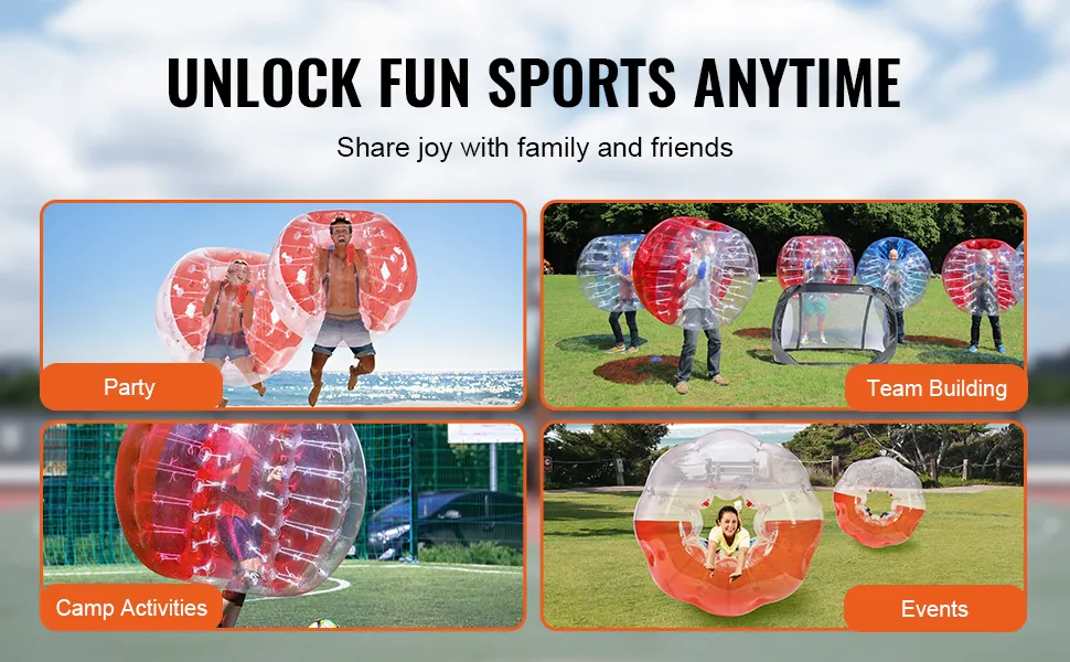 Der aufblasbare Bumper Ball von VEVOR ist perfekt für Mannschaftsspiele. Er fördert Teamwork und freundschaftlichen Wettbewerb. Der Ball ist ideal für Aktivitäten wie Bubble Soccer. Sie können ihn auch für andere Spiele wie Fangen verwenden. So bleibt das Spiel sicher und unterhaltsam. Darüber hinaus können Sie Konflikte auf spielerische Weise lösen. Benutzer können zusammenstoßen, ohne sich gegenseitig zu verletzen. Dies macht ihn ideal für Familienfeiern und Partys. Ein Bumper Ball verleiht jeder Veranstaltung im Freien ein Element des Spaßes. Die Leute kommen zusammen und haben eine wunderbare Zeit.