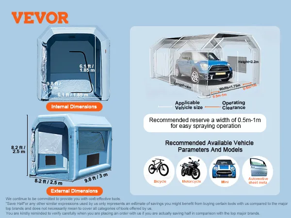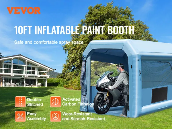 Vielseitig: Die tragbare aufblasbare Lackierkabine (10 Fuß / 3 m) eignet sich zum Lackieren und Reparieren von Fahrrädern, Motorrädern, Kleinmöbeln, Autoteilen, Metallprodukten und vielem mehr. Sie kann auch als temporärer Raum für Ausstellungen, Camping und medizinische Versorgung genutzt werden.