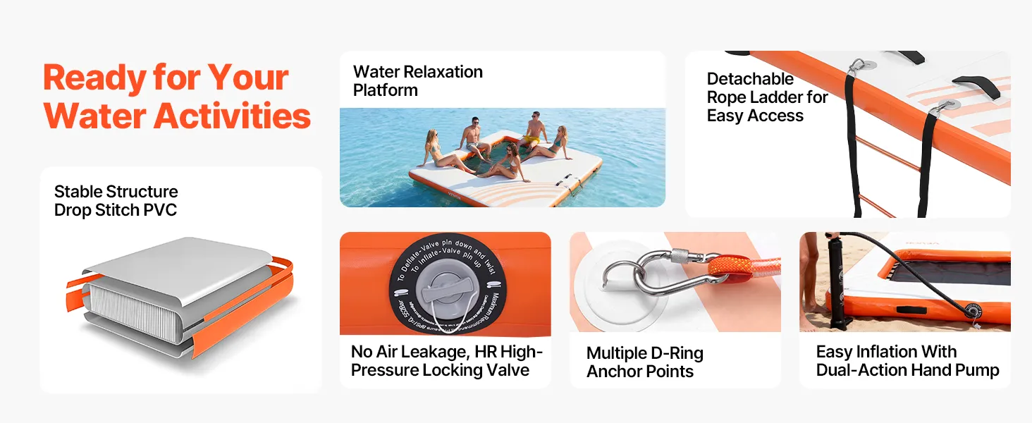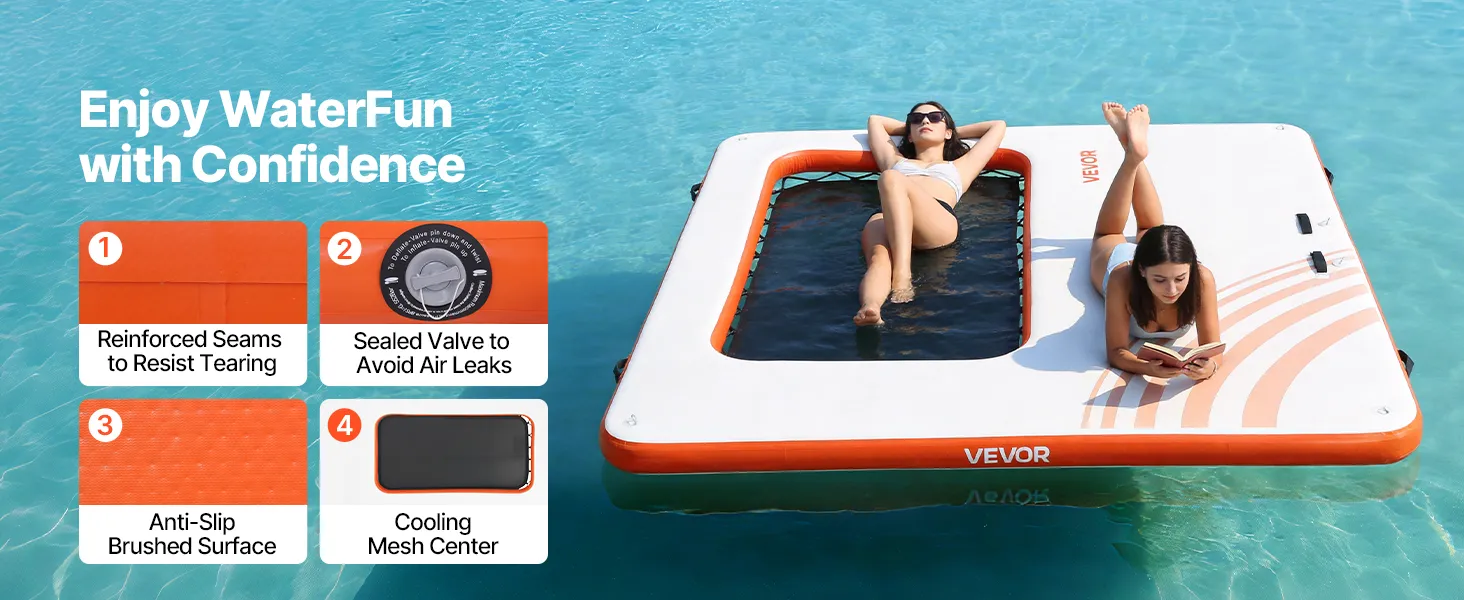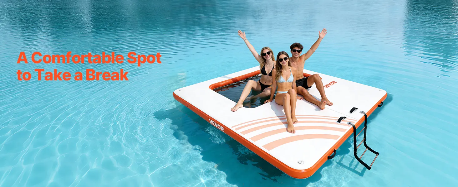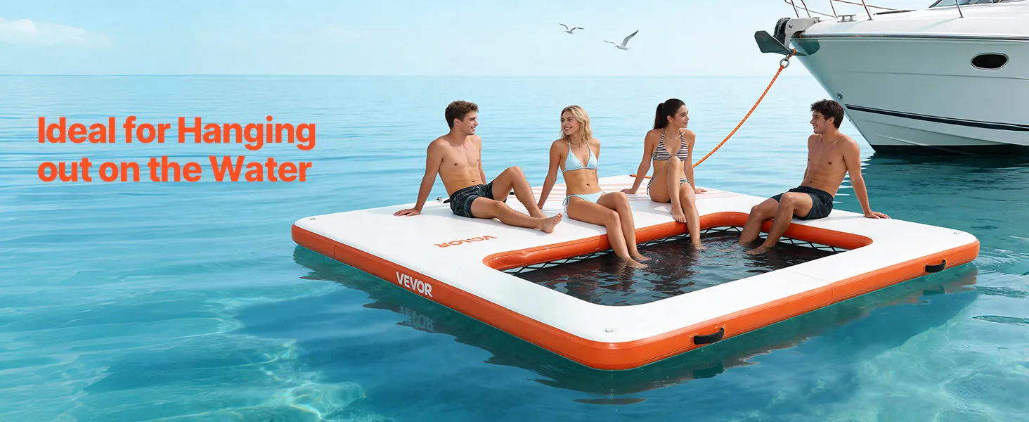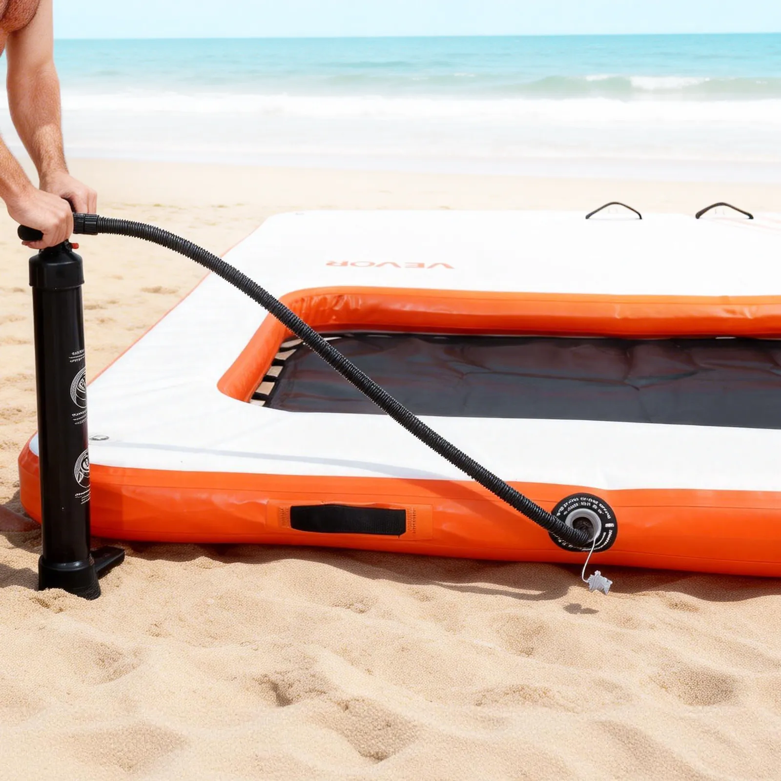 Dieses aufblasbare Dock mit integriertem Netzbecken bietet vielfältige Möglichkeiten für Wassersport und eignet sich ideal als Badeplattform, schwimmendes Floß oder Wasserhängematte.