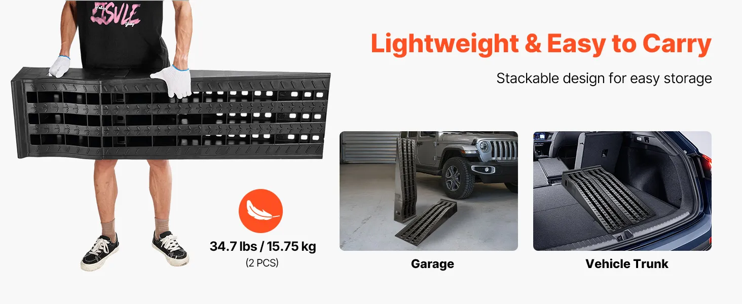 Hohe Tragfähigkeit: Dieses 2er-Pack Autorampen-Set verfügt über eine hohe Tragfähigkeit. Jede Rampe trägt bis zu 3250 lbs (1.474 kg), zwei Rampen tragen 6500 lbs (2.948 kg). Mit diesem Set können Sie Ihr Fahrzeug mit einem zulässigen Gesamtgewicht von 5.897 kg problemlos anheben