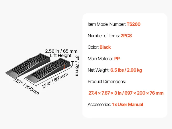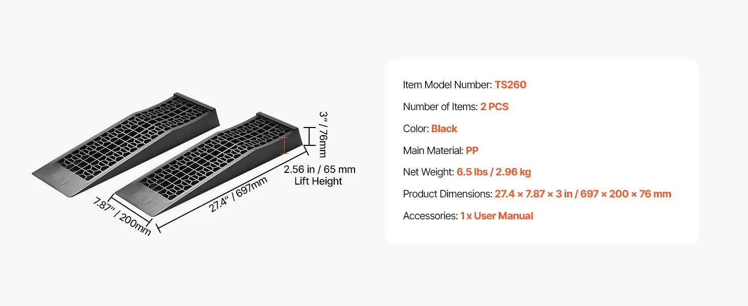 VEVOR Autorampen Auffahrrampen 2 Stk. 65 mm Hub, tragbare Auto-Servicerampen für Wartung in der Garage & Ölwechsel & Fahrzeuge mit niedrigem Fahrgestell 2268 kg (pro Rampe) belastbar Auffahrhilfe