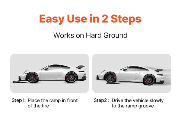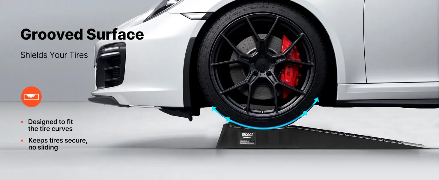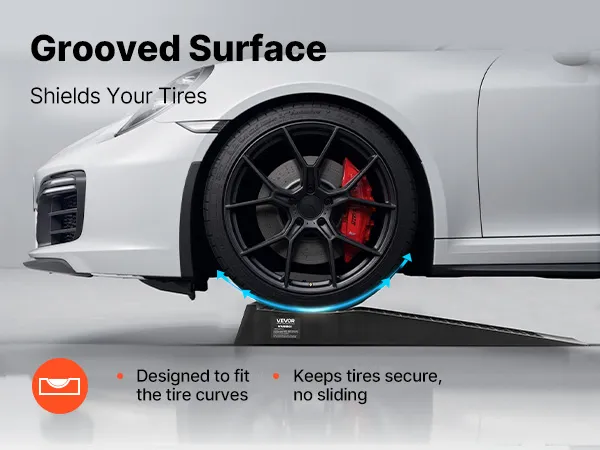Die Oberfläche der Auffahrrampen verfügt über tiefe Rillen, die sich den Reifenkurven anpassen und die Reifen fest an ihrem Platz halten. Dieses Design minimiert das Rutschen und vermeidet Reifenschäden.