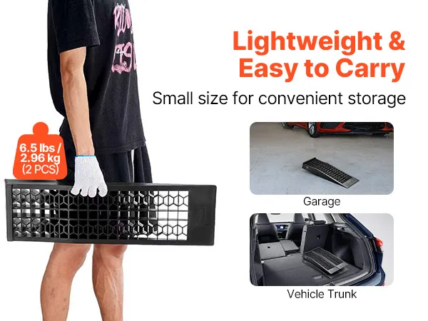 Diese Ölwechselrampen aus PP-Material sind leicht und einfach zu transportieren. Dank ihrer kompakten Größe lassen sie sich platzsparend in der Garage oder im Kofferraum Ihres Fahrzeugs verstauen und sind bei Bedarf schnell zugänglich.