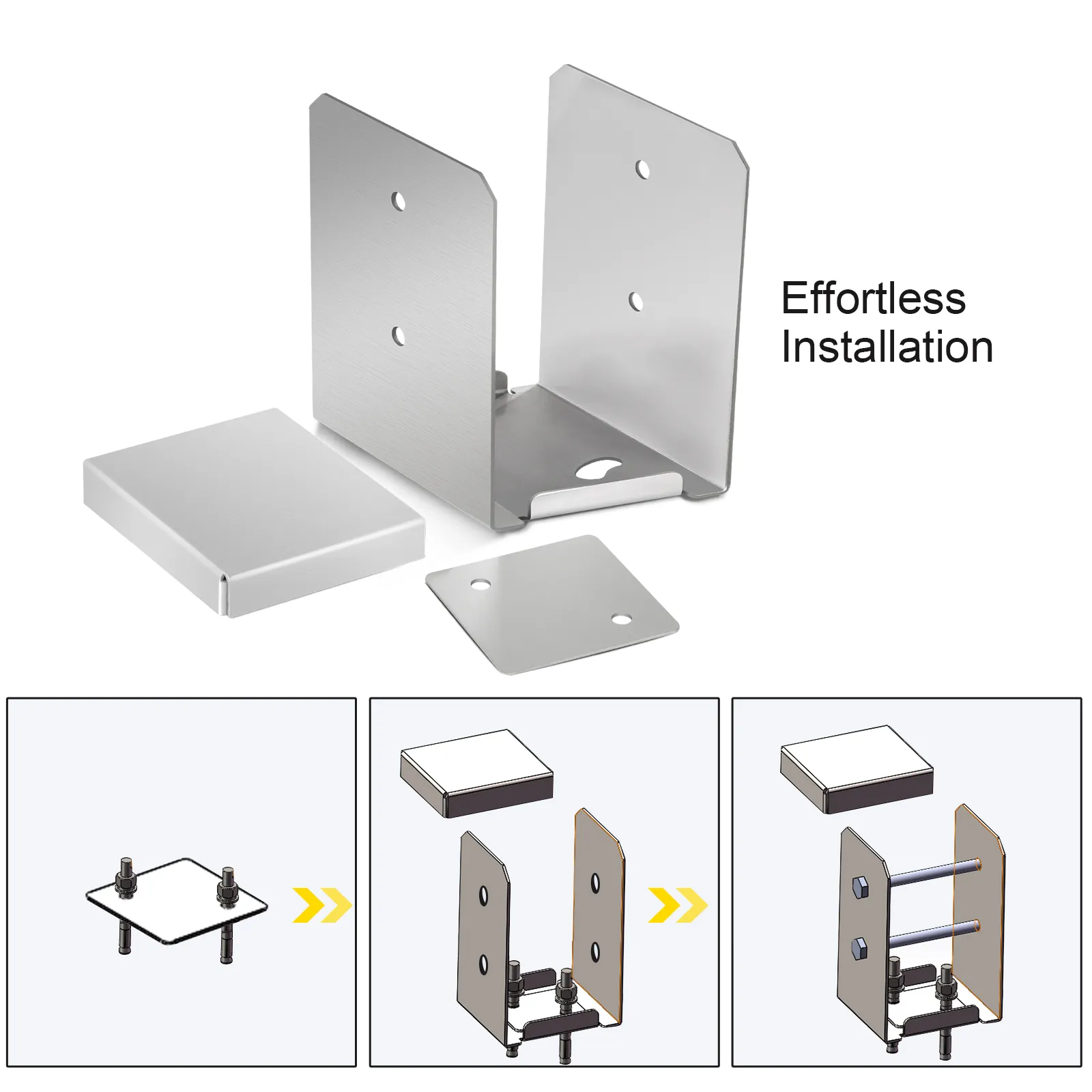 Die Installation des Pfostenträgers(Betonankers) ist recht einfach. Sie können die Schrauben mit einem Schraubenschlüssel anbringen - nur einige Schritte, um die Montage abzuschließen.