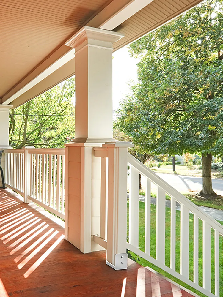 Die Pfostenträger sind wasserdicht und korrosionsbeständig. Sie sind sehr gut geeignet für Terrassenkonsolen, Veranda-Geländer, Treppenhandläufe, Briefkastenpfosten usw.