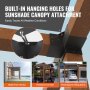 Sunshade sail attachment: Simply mount the sunshade sail to block sunlight and protect the pergola interior from direct sun exposure, creating a comfortable and shaded retreat. It also provides protection from rain and keeps your belongings dry. Convenient threaded holes make installation, maintenance, and cleaning of the sail easy.