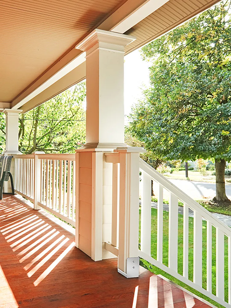 Die Pfostenträger sind wasserdicht und korrosionsbeständig. Sie sind sehr gut geeignet für Terrassenkonsolen, Veranda-Geländer, Treppenhandläufe, Briefkastenpfosten usw.