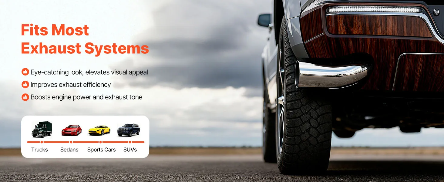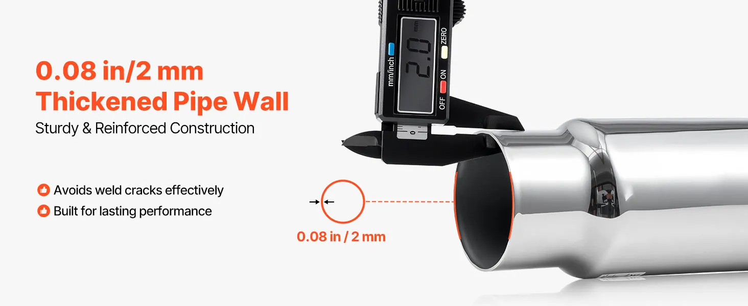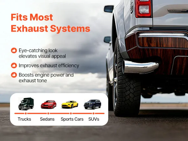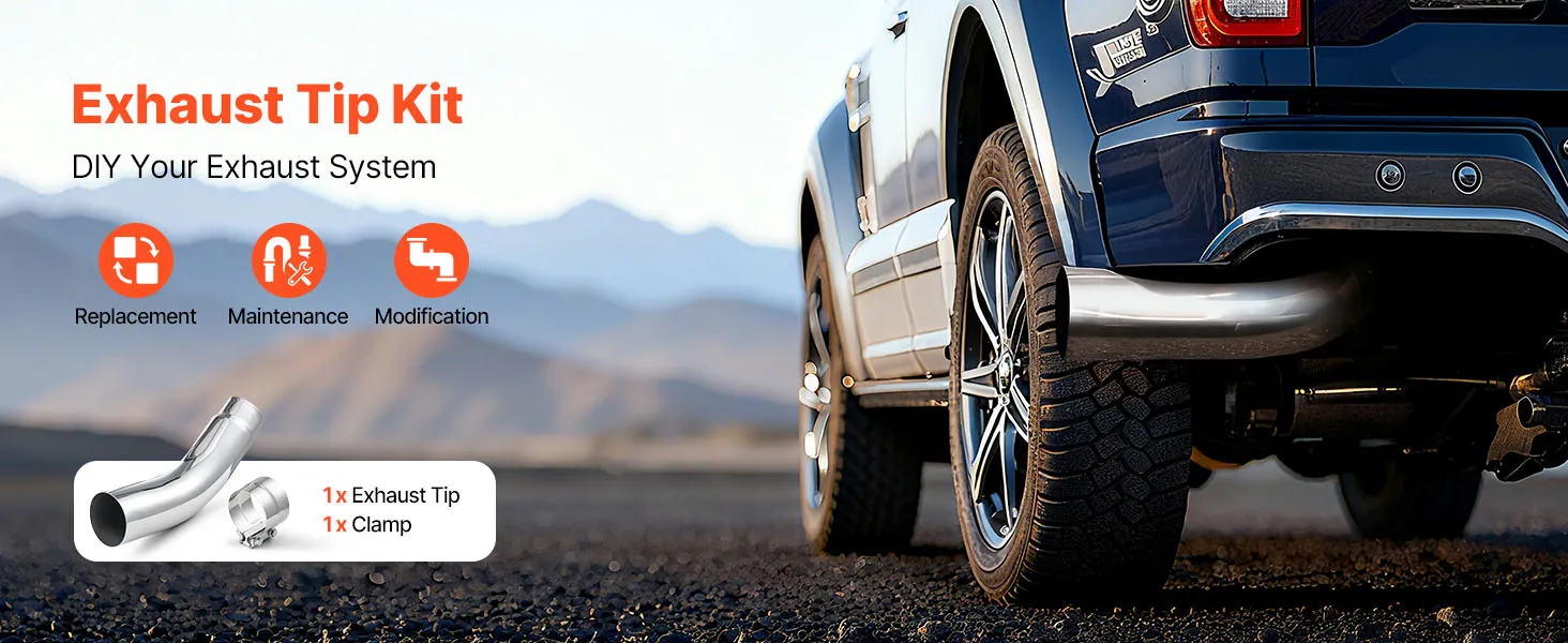 Dieses silberfarbene, verchromte Auspuffendrohr verleiht Ihrem Fahrzeug ein elegantes Aussehen und optimiert gleichzeitig den Abgasdurchsatz, wodurch Leistung, Kraft und Klang Ihres Fahrzeugs verbessert werden.