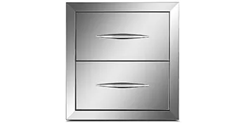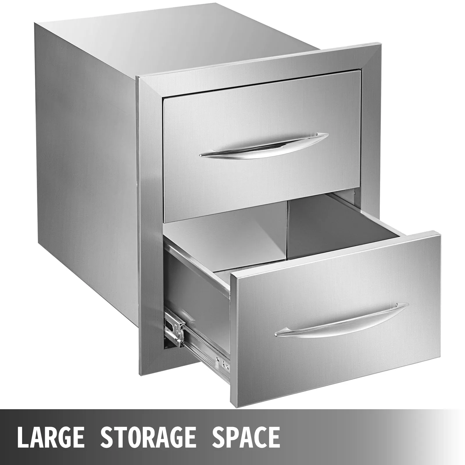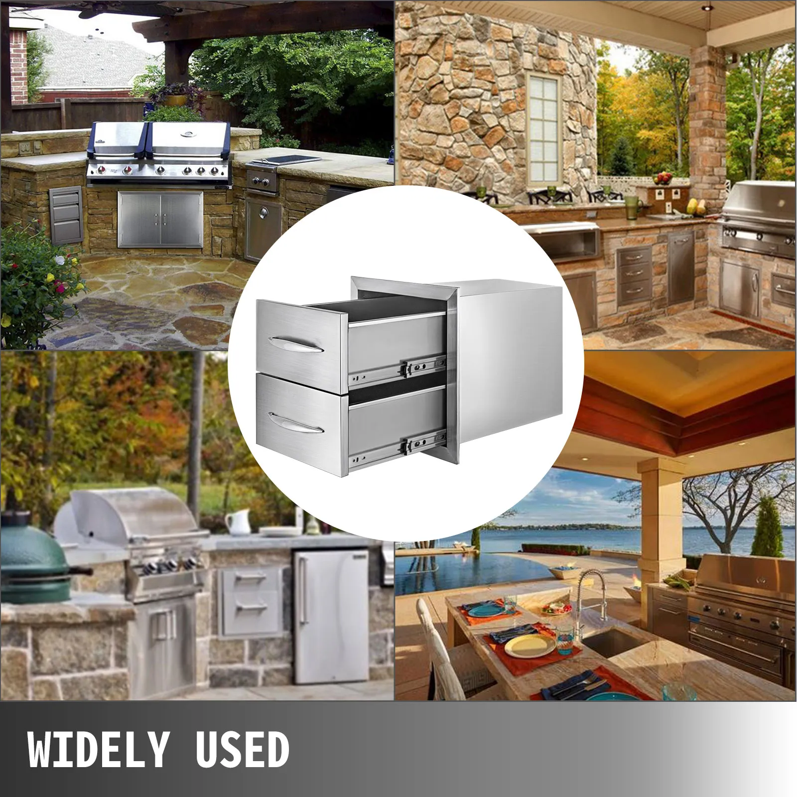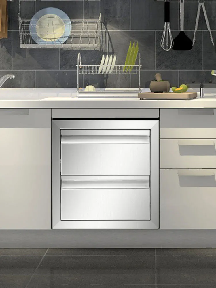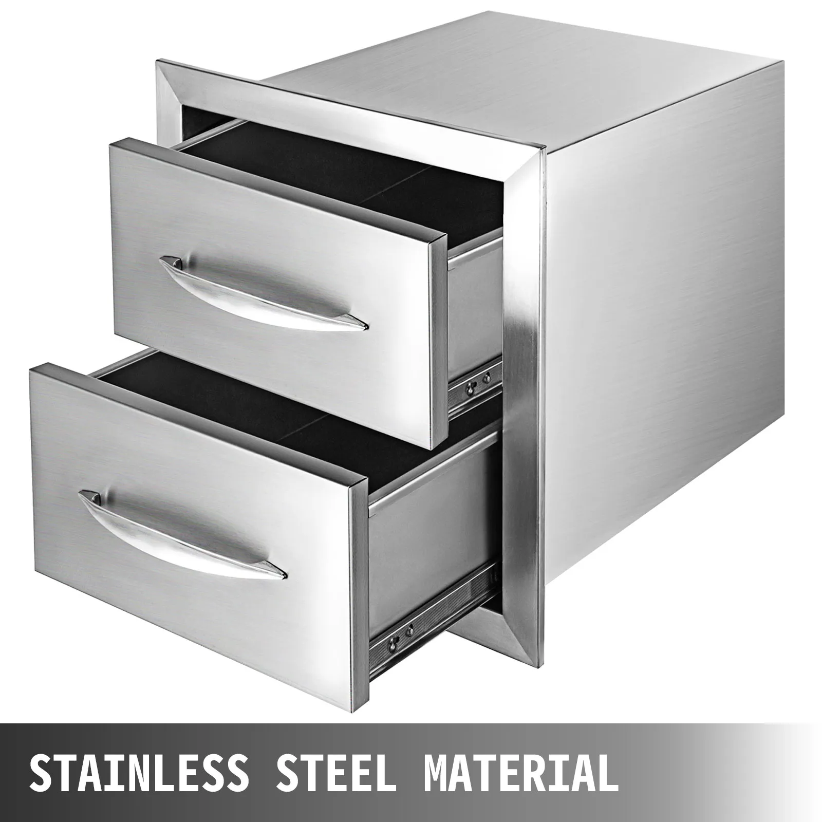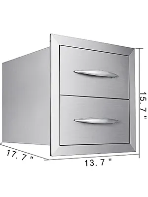 Hochwertige Küchenschubladen im Freien mit doppeltem Stauraum, die einen großen Stauraum für Küchenutensilien gewährleisten. Es besteht aus Edelstahl und ist langlebig und robust für den Langzeitgebrauch. Auch korrosionsbeständig und leicht zu reinigen. Mit dem vollständig geschlossenen Kasten können die Innenseiten wirksam vor Regen, Wind, Staub und Insekten geschützt werden. Es ist perfekt für die Küche im Freien und den Grill mit Inselstil.