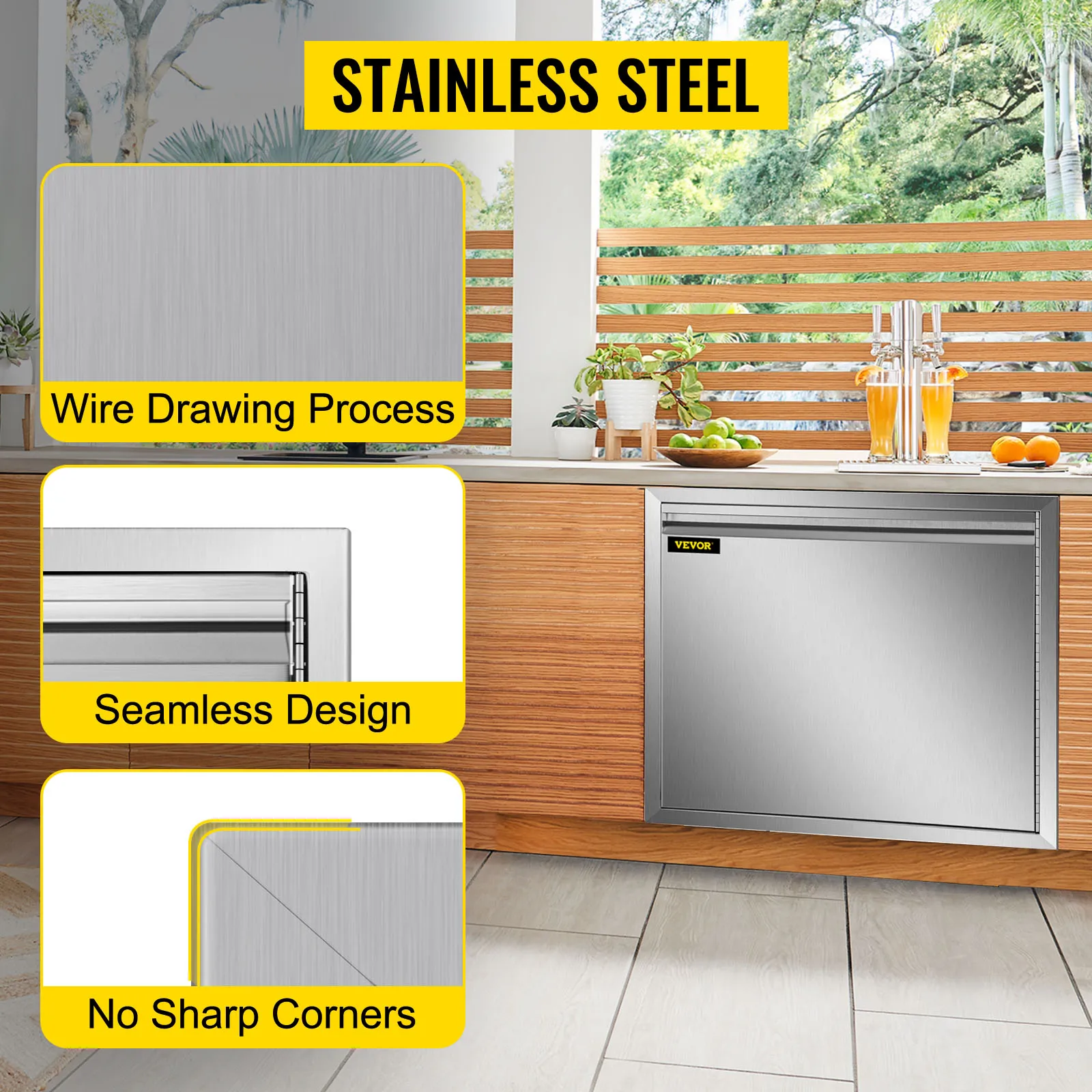 Unsere 26 x 22 Zoll / 66 x 56 cm große Außenküchentür ist aus rostfreiem Edelstahl gefertigt, rost- und korrosionsbeständig für eine lange Nutzungsdauer. Das nahtlose Design blockiert Staub oder Regenwasser und abgerundete Ecken gewährleisten eine sichere Nutzung.