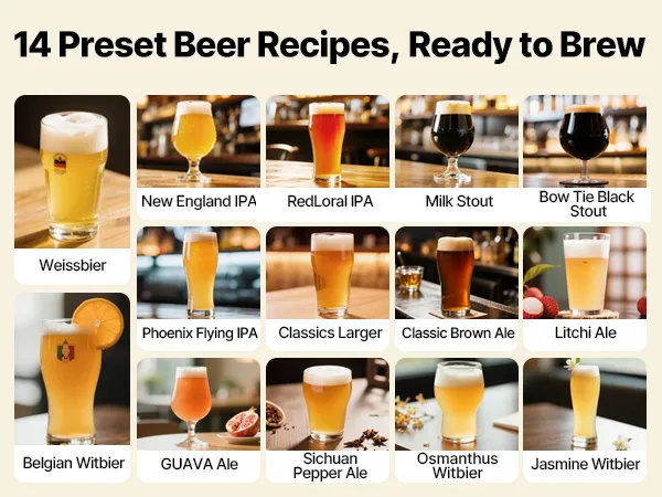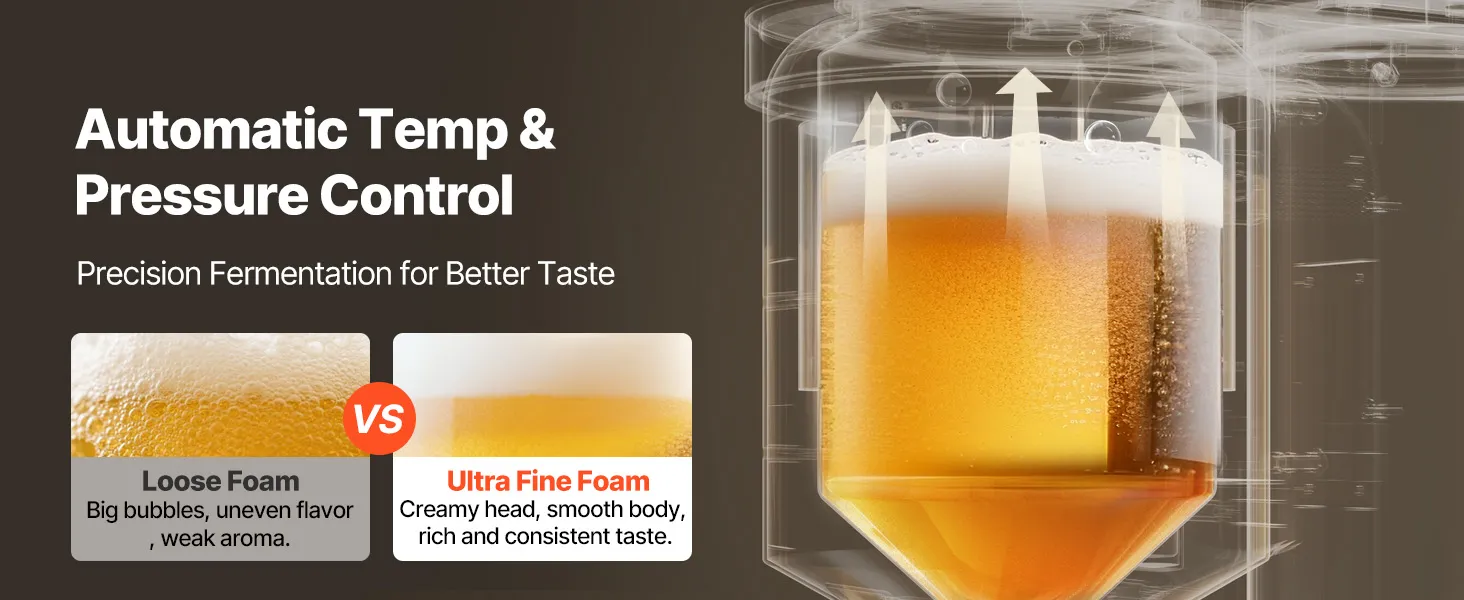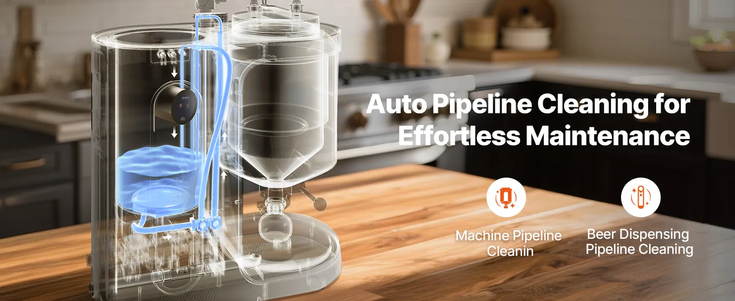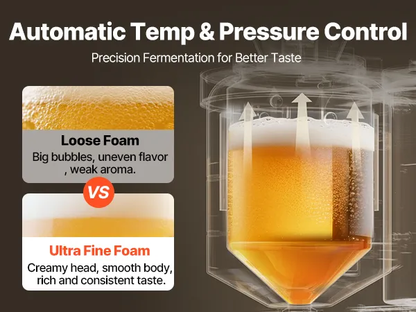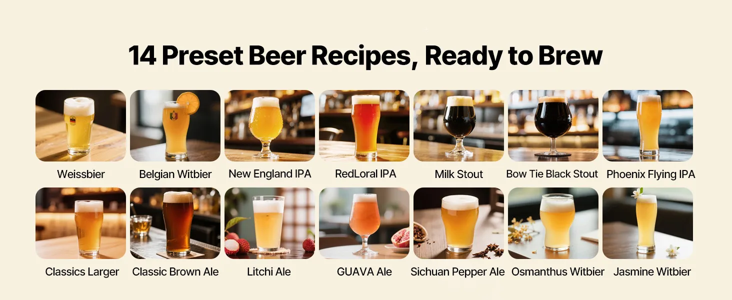 Automatische Kühlung & Bierzapfung: Als intelligente Brauanlage kühlt sie das Bier nach der Gärung auf 41 °F (5 ℃), um optimalen Geschmack zu gewährleisten. Ein integrierter elektrischer Zapfhahn ermöglicht eine reibungslose Ein-Knopf-Zapfung – sauber, schnell und mühelos