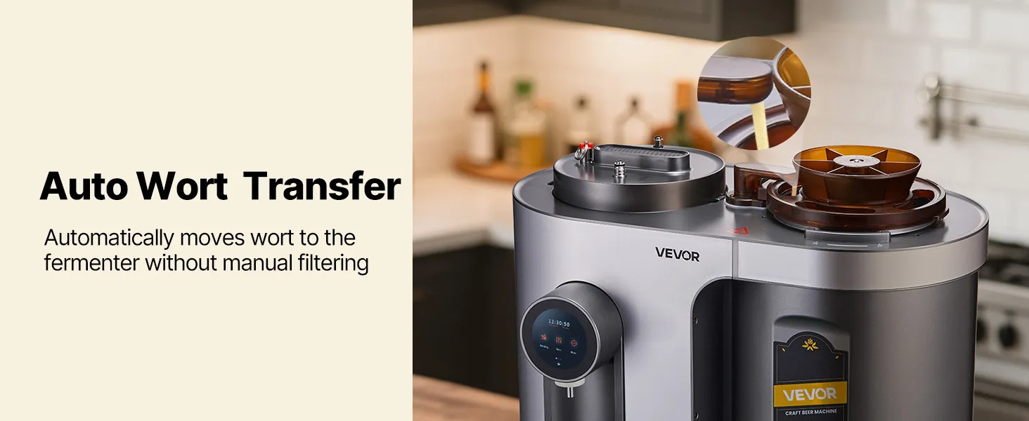 Mit dieser All-in-One-Maschine brauen Sie Ihr Bier ganz einfach zu Hause. Vollautomatisch vom Maischen bis zur Abfüllung, Start per Knopfdruck und übersichtliches LCD-Display. 14 integrierte Rezepte plus DIY-Modus für individuelle Geschmacksrichtungen – ideal für Einsteiger und Craft-Beer-Liebhaber.