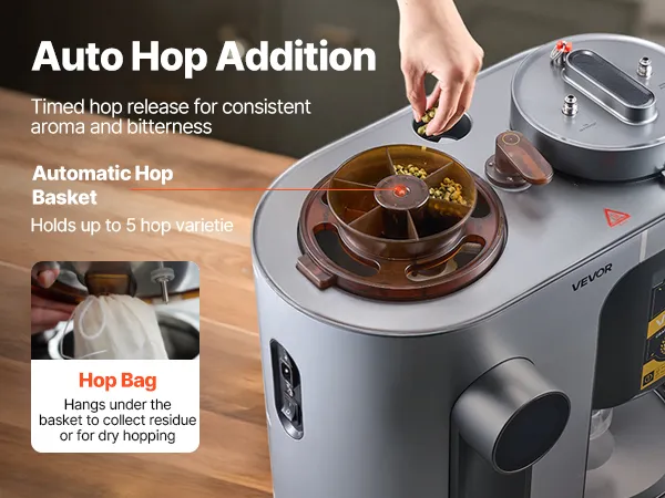 Präzise Gärkontrolle: Der automatische Heimbrauer gewährleistet eine stabile Gärung durch präzise Temperatur- und Druckregelung. Hopfen wird automatisch zum optimalen Zeitpunkt zugegeben und intensiviert so Aroma und Geschmack – ganz ohne manuelle Überwachung