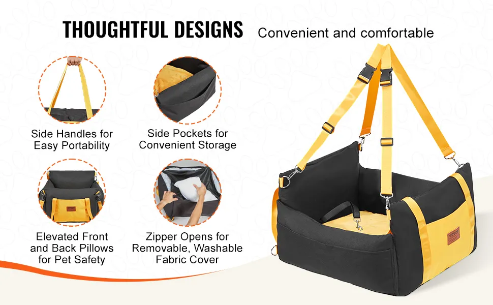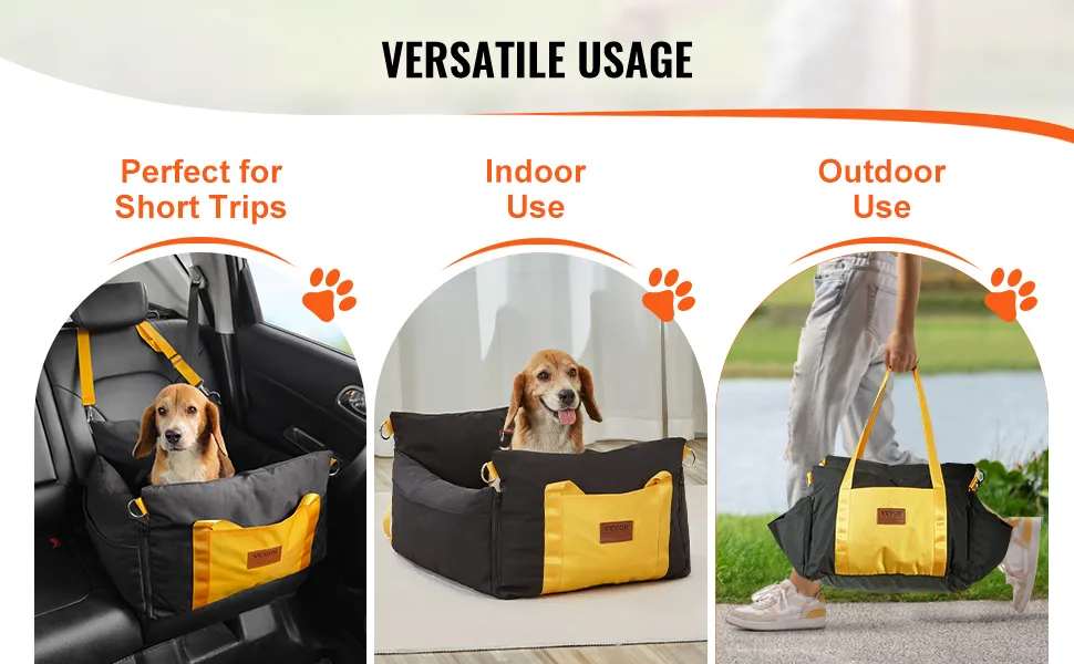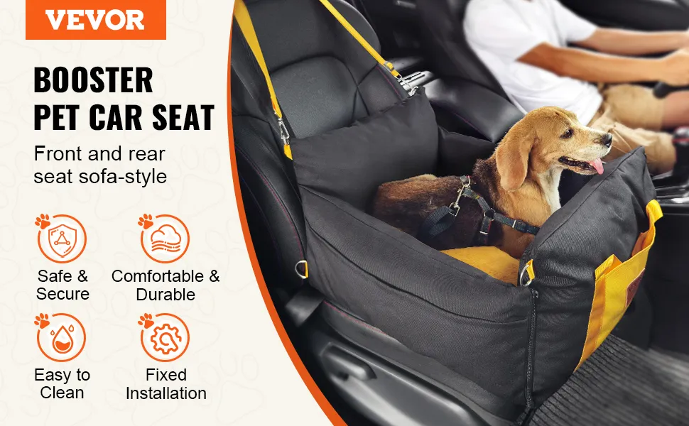 VEVOR Hundeautositz Hundesitzerhöhung mit seitlichen Griffen und Aufbewahrungstasche, ansteckbarer Sicherheitsleine und Füllung aus PP-Baumwolle, Hundeautobett für kleine Hunde bis 25 Pfund, Schwarz