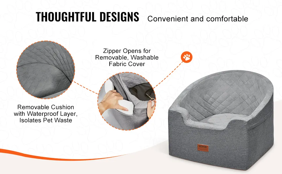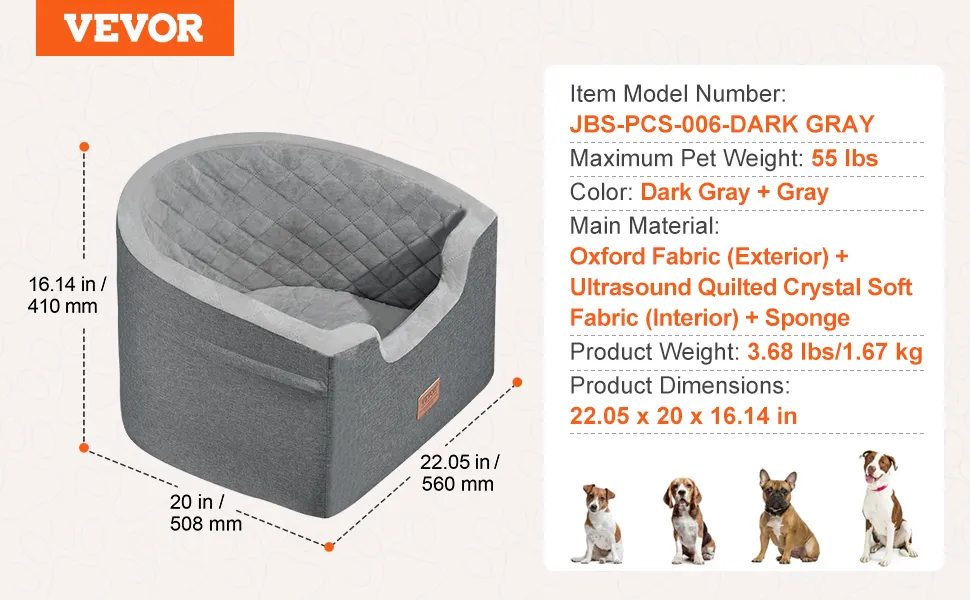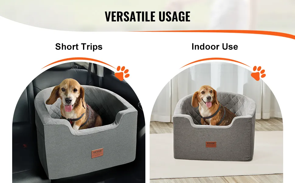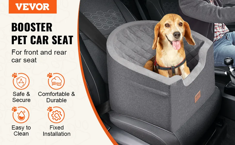 VEVOR Hundeautositz, wasserdichter Hundesitzerhöhung fürs Auto mit Aufbewahrungstasche, ansteckbarer Sicherheitsleine und Schwammfüllung, Hundeautobett für kleine und mittelgroße Hunde bis 25 kg, grau