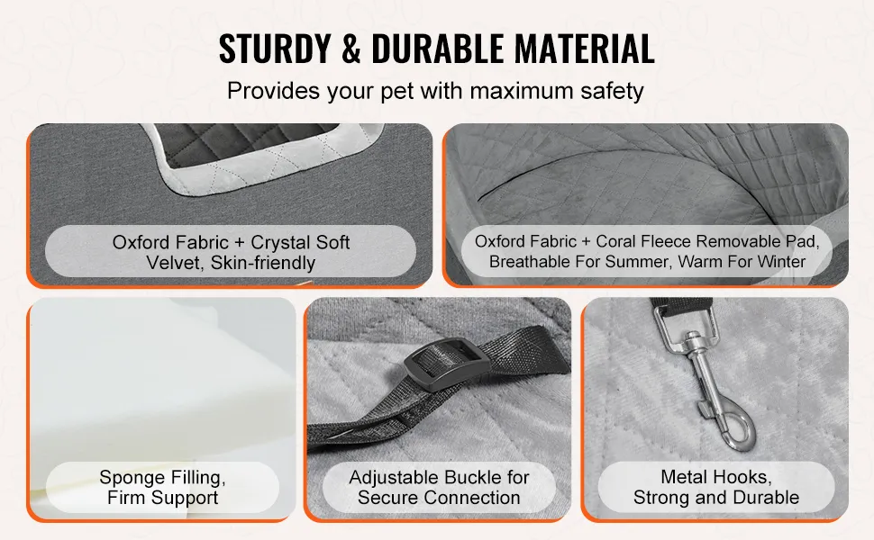 Hergestellt aus weichem Stoff mit Schaumstofffüllung für einen stabilen, verschleißfesten Sitz. Dieser Hunde-Autositz erhöht Ihr Haustier und reduziert Reiseängste.