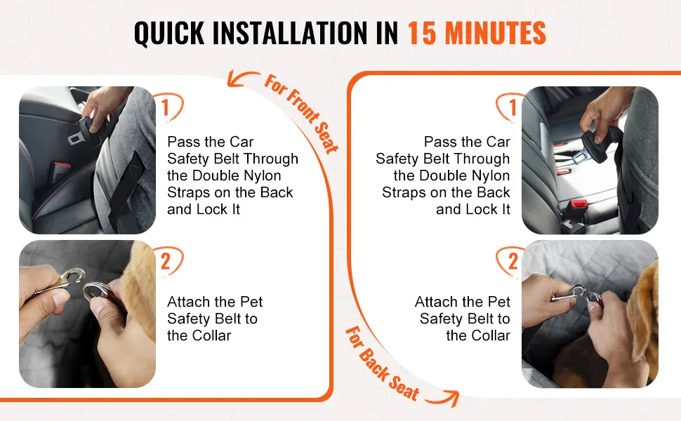 Einfache Installation für unterwegs: Dieser Autositz für Hunde kann sowohl auf Vorder- als auch auf Rücksitzen installiert werden. Er wird mit zwei verstellbaren Sicherheitsgurten und einem festen Haustier-Sicherheitsgurt geliefert. Sichern Sie den Sitz mit verstellbaren Premium-Schnallen, um ein Verrutschen zu verhindern, sodass Sie sich auf das sichere Fahren konzentrieren können.