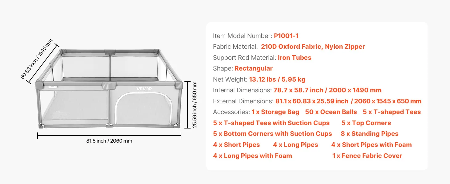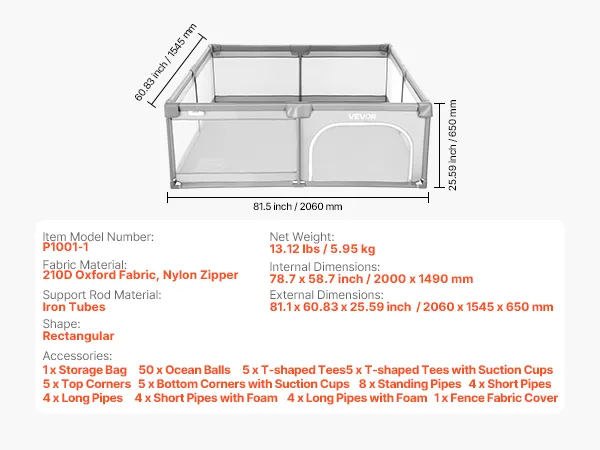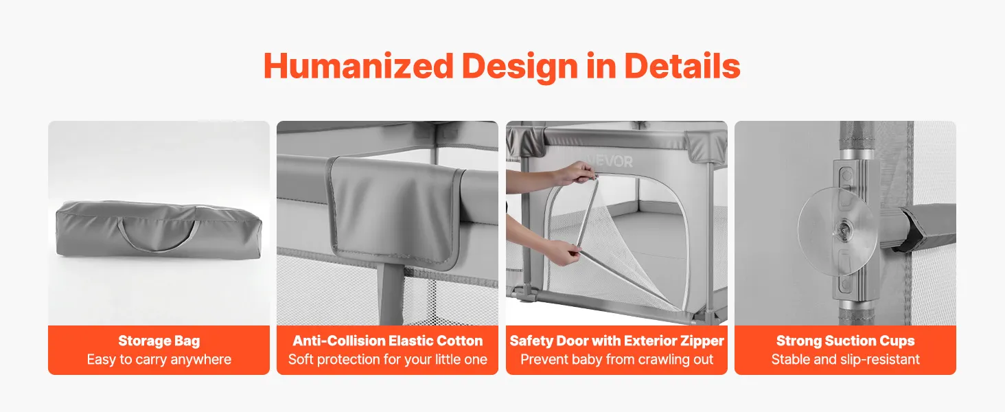 Einfacher Aufbau und einfache Lagerung: Dieser VEVOR-Spielzaun für Babys und Kleinkinder kann schnell von einer Person aufgebaut werden und wird mit einer Aufbewahrungstasche geliefert, die den Transport und die kompakte Lagerung bei Nichtgebrauch erleichtert – das spart Platz und sorgt für zusätzlichen Komfort.