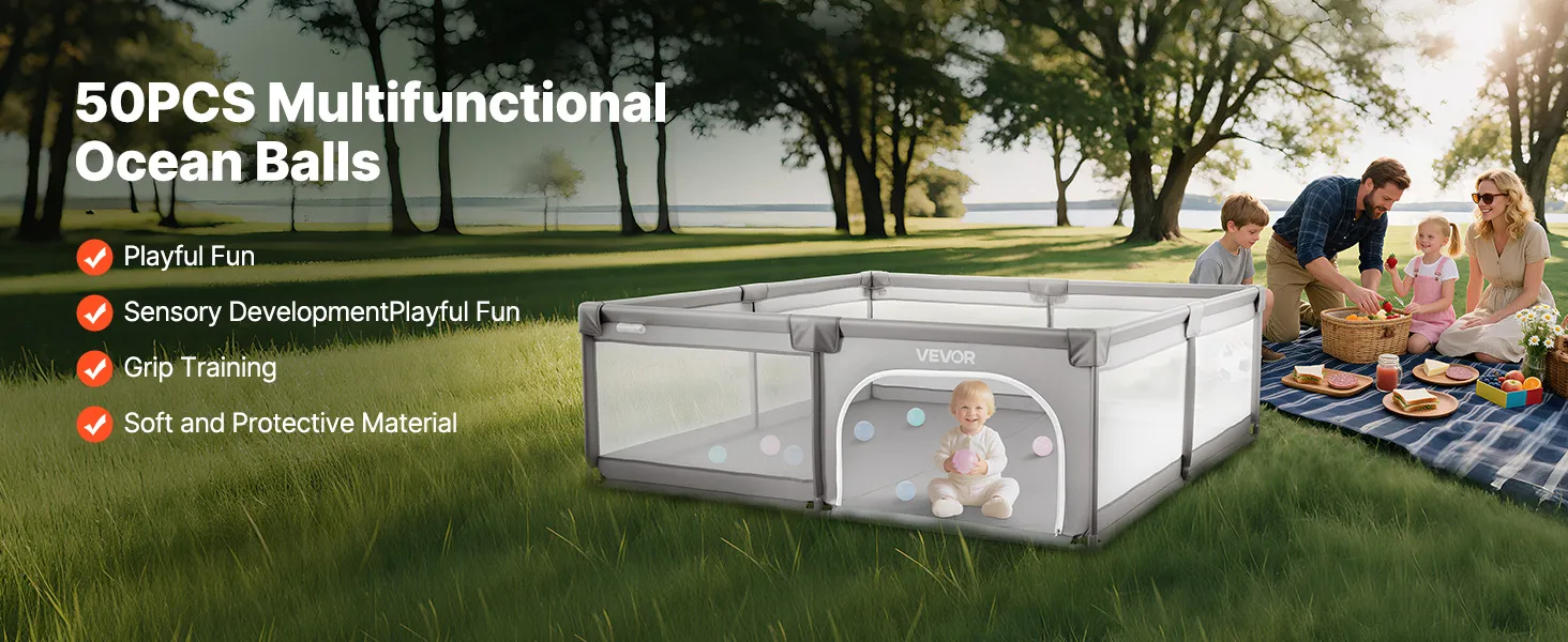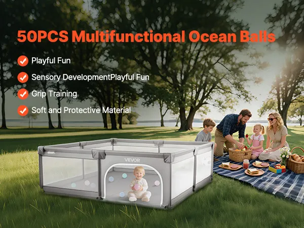 VEVOR Baby-Laufstall, 200x149 cm, Spielstall für Kinder, Zaun-Spielplatz für drinnen & draußen mit 50 Ozeanbällen, Tür mit Reißverschluss & atmungsaktivem Netz, Sicherheits-Aktivitätszentrum
