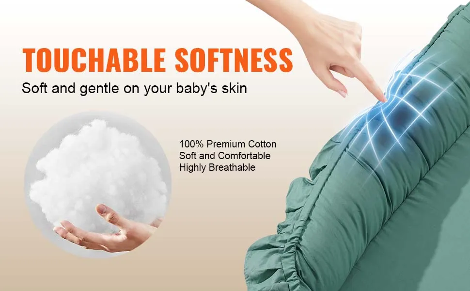 Gemütlich wie Mamas Umarmung: Die VEVOR-Babyliege mit U-förmiger Kopfstütze und sicheren Stoßfängern aus hochelastischer PP-Baumwolle bietet ein bionisches 360°-Erlebnis. Die 1,6 Zoll / ca. 4 cm dicke Matratze stützt den Rücken Ihres Babys und fördert eine gesunde Entwicklung der Wirbelsäule. Sie schafft ein sicheres und bequemes Nest.