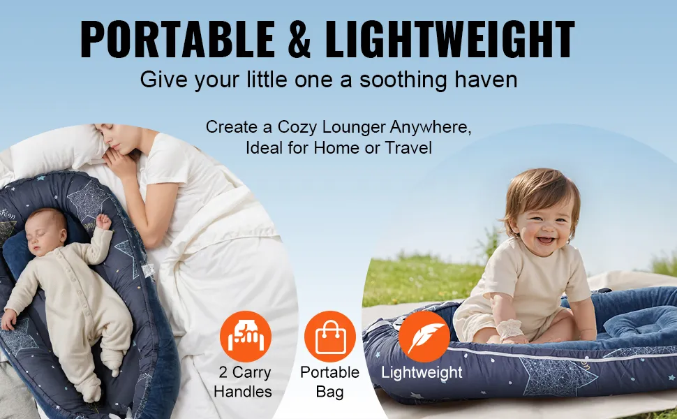 Ob zu Hause oder unterwegs, mit dieser leichten Neugeborenen-Nestliege und der mitgelieferten Tragetasche können Sie ganz einfach einen bequemen Platz einrichten und dafür sorgen, dass sich Ihr Kleines überall sicher und entspannt fühlt.