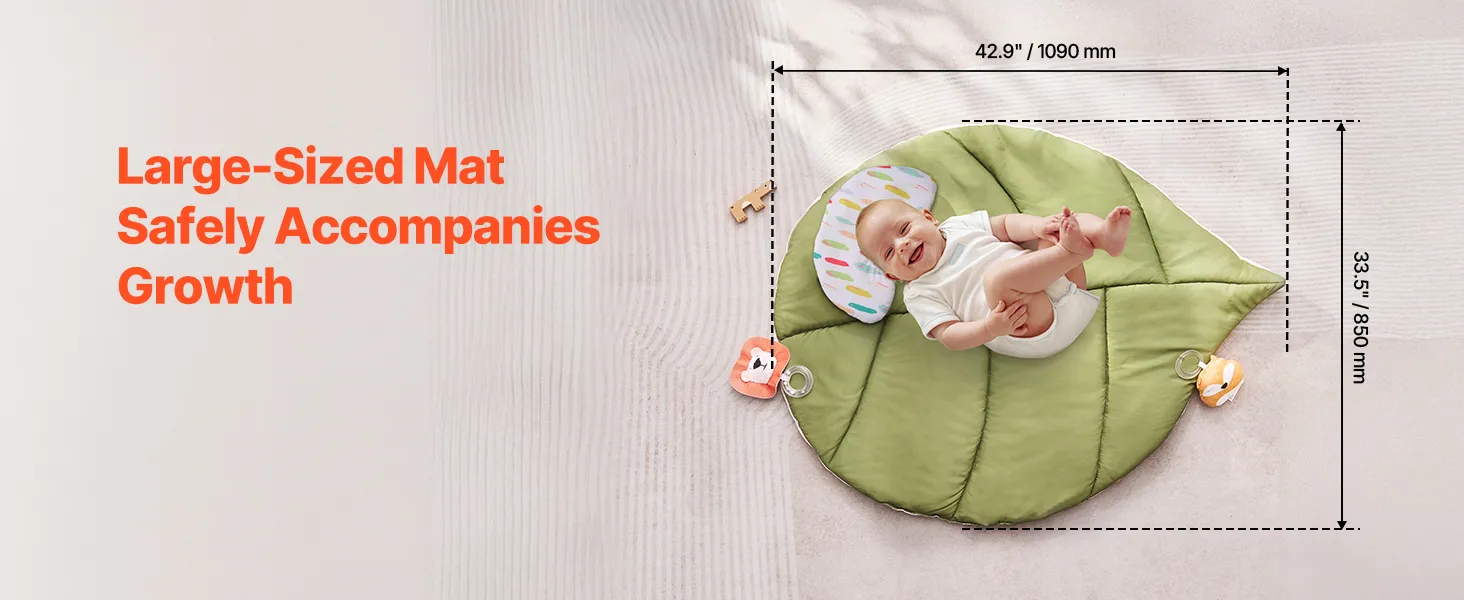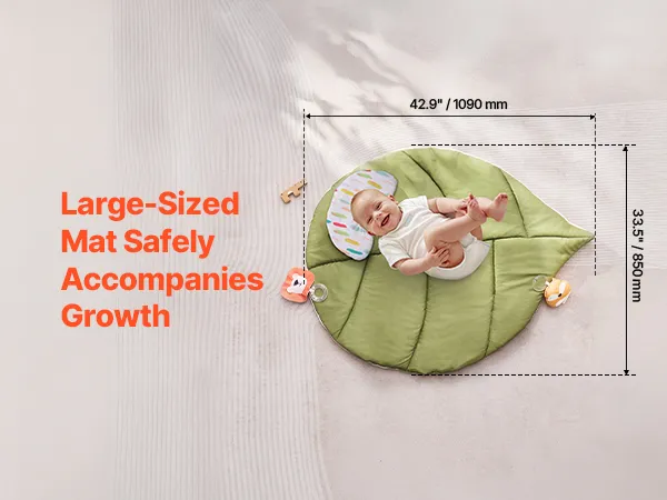 Große Spielgröße: Unsere blattförmige Baby-Aktivitätsmatte misst 108 x 85 cm und bietet Babys einen geräumigen und sicheren Spielbereich zum Hinlegen, Umdrehen und Aufsetzen. Außerdem ist ein speziell für Neugeborene entwickeltes Bauchkissen enthalten.