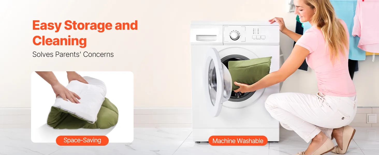 Diese Spielmatte und das Aktivitätsstudio für Kleinkinder sind zur einfachen Reinigung maschinenwaschbar und können zur Aufbewahrung einfach zusammengefaltet werden, sodass Eltern sich keine Sorgen mehr um Reinigung und Aufbewahrung machen müssen.