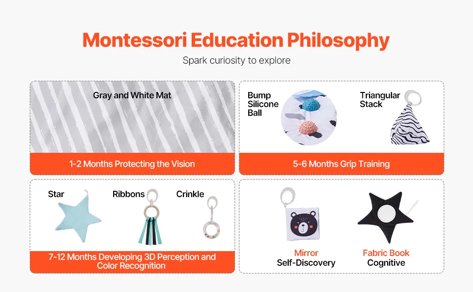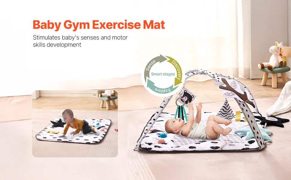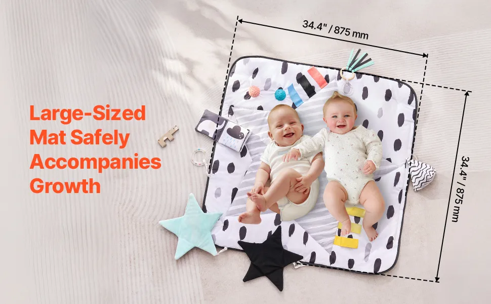 Unsere Baby-Spielturnmatte ist wichtig für die Entwicklung der sensorischen und motorischen Fähigkeiten des Babys. Die 875 x 875 mm große Spielmatte mit 6 sensorischen Spielzeugen ist perfekt für Babys im kognitiven Stadium und hilft ihnen, die Welt zu spüren, zu entdecken und zu erkunden, und fördert so kognitives Wachstum und eine gesunde Entwicklung.