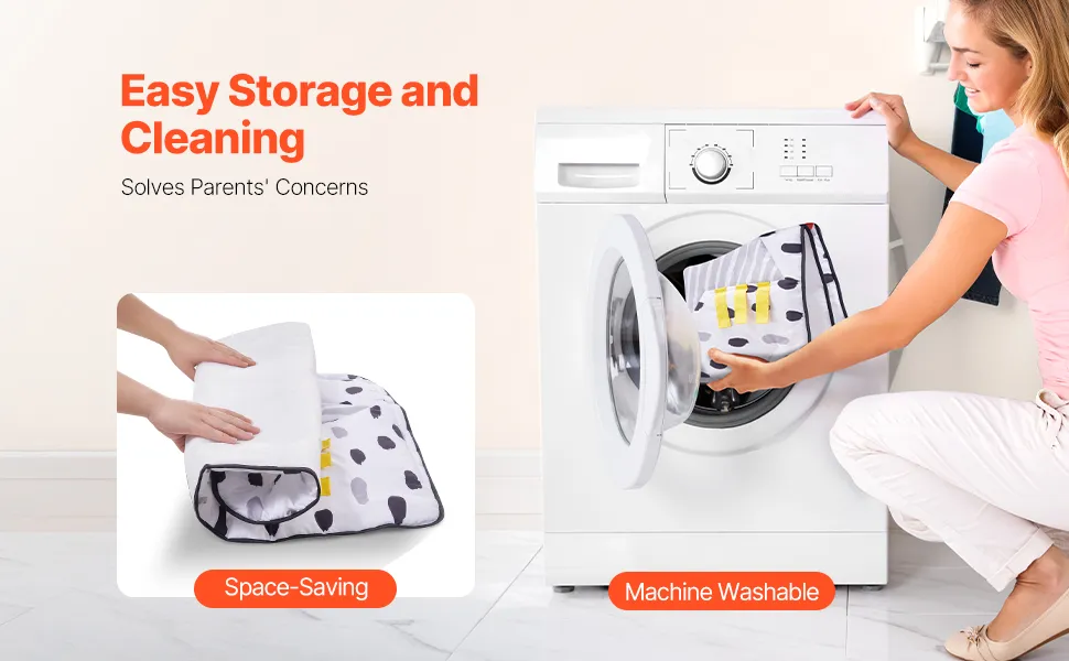 Diese Spielmatte und das Aktivitätsstudio für Kleinkinder sind zur einfachen Reinigung maschinenwaschbar und können zur Aufbewahrung einfach zusammengefaltet werden, sodass Eltern sich keine Sorgen mehr um Reinigung und Aufbewahrung machen müssen.