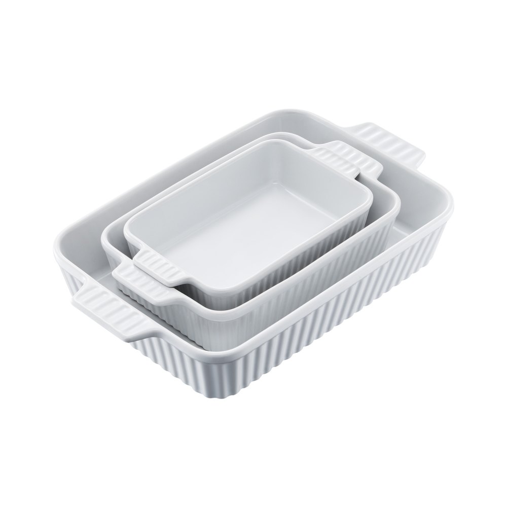 VEVOR Keramik-Auflaufform, 3-teilig, rechteckig, Backgeschirr-Set, tief zum Backen
