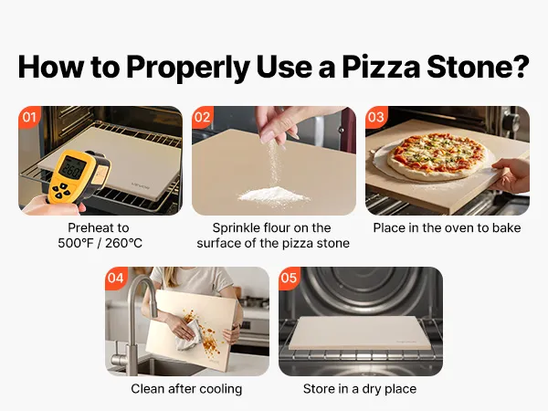 Leicht zu reinigen: Nach dem Abkühlen den Cordierit-Pizzastein einfach mit warmem Wasser abwaschen, mit einem feuchten Tuch abwischen und trocknen. Bei längerem Gebrauch erhalten die darauf zubereiteten Speisen einen intensiveren Geschmack. Hinweis: Erstgebrauch: Vorher reinigen, trocknen und dann langsam erhitzen, um die Lebensdauer zu verlängern