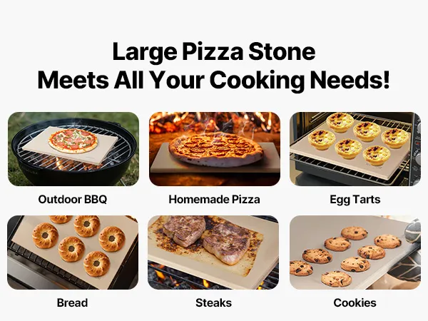 Mit diesem großen Backstein können Sie Pizza, Brot, Kekse und andere Köstlichkeiten zubereiten oder Speisen wieder aufwärmen, um sie wieder knusprig zu machen. Ob in der heimischen Küche oder beim Grillen im Freien – er macht alles noch köstlicher!