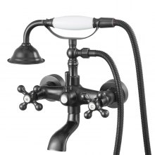 VEVOR Badewannenarmatur Klauenfuß zur Wandmontage mit Handbrause, Vintage Badewannenarmatur mit verstellbaren Schwenkarmen & 360°-Drehauslauf, Wasserhahn Duschset Wannenfüll-Set Mattschwarz
