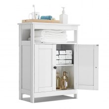 VEVOR Badezimmerschrank Badschrank 4-stufig aus Holz mit 2 Türen & verstellbarem Regal, Bodenschrank für Küche/Wohnzimmer/Eingangsbereich, freistehender Aufbewahrungsschrank Küchenschrank weiß