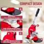 roter VEVOR Buttonmaker mit detaillierten Maßangaben