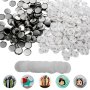 Die Teile des Knopfherstellers mit vorderer Abdeckung aus Weißblech, hinterer Abdeckung aus Kunststoffstift und PVC-Folie zeichnen sich durch Haltbarkeit, Robustheit und hohe Härte aus. Mit 500 Sets Abzeichen-Teilen können Sie mühelos 500 hübsche Abzeichen als perfektes Zubehör für ein Hemd, eine Jacke und unzählige andere Gegenstände herstellen.