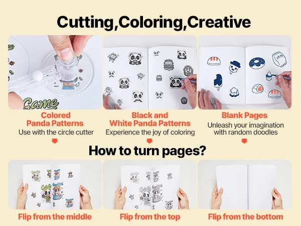 Exklusiver Spaß: Die Knopfdruckmaschine enthält ein Zauberbuch mit drei lustigen Aktivitäten: bunte Panda-Motive zum Ausschneiden, schwarz-weiße Panda-Motive zum Ausmalen und leere Seiten für kreative Ideen. Tragen Sie das süße Mr. Panda-Abzeichen, um cooler auszusehen