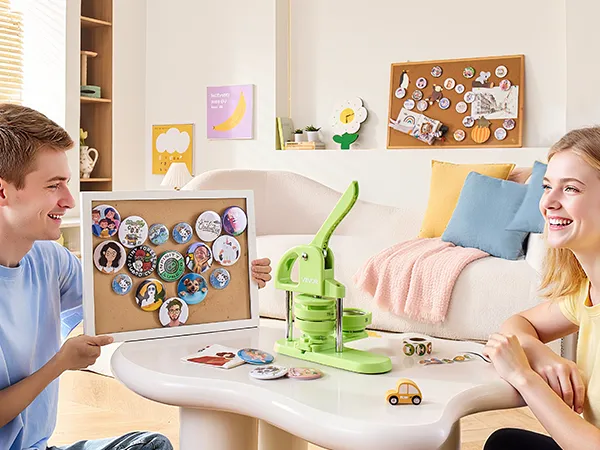 Gestalten Sie personalisierte Geschenke: Gestalten Sie individuelle Buttons für jeden Anlass. Unser Pinmaker funktioniert auch mit Spiegeln, Schlüsselanhängern, Flaschenöffnern und Magneten – verwandeln Sie Ihre Kreativität in einzigartige, herzliche Andenken.